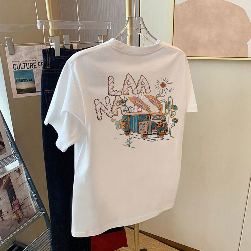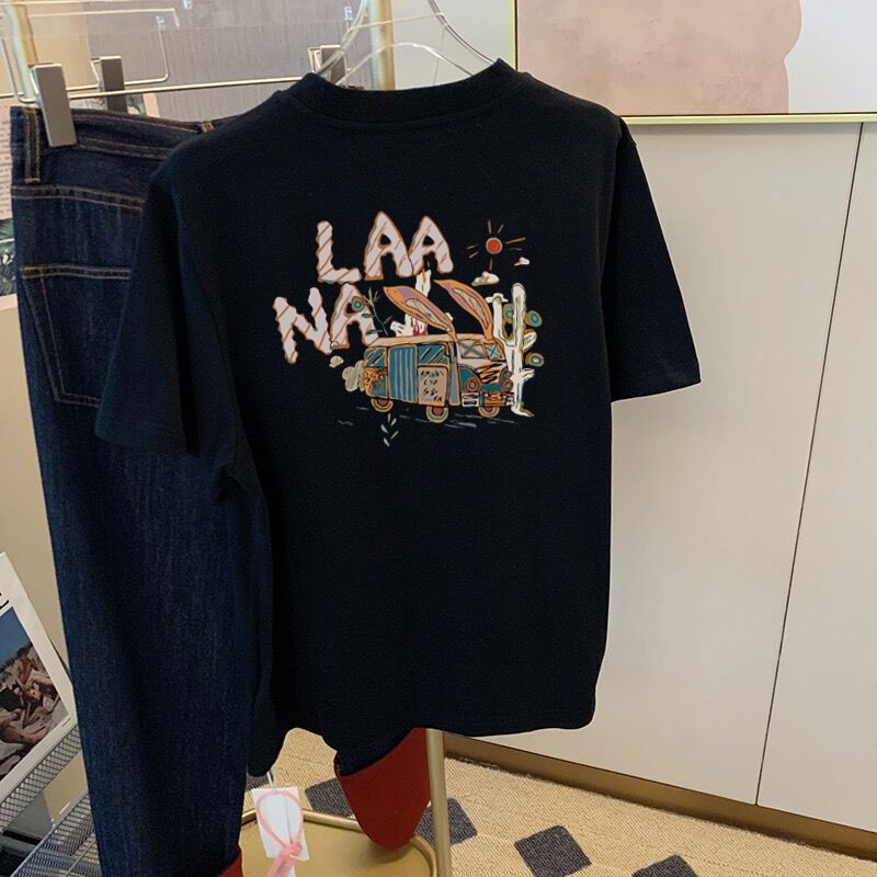 韩版圆领字母印花小众设计感不规则短袖T恤女夏新款别致上衣