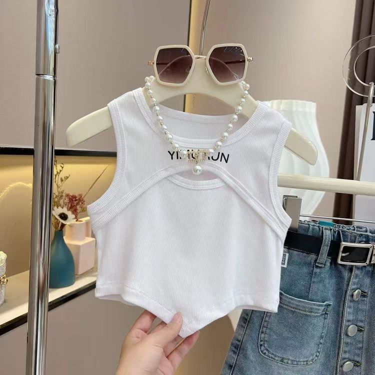 夏季女童背心宝宝洋气儿童个性潮韩版字母漏洞不规则无袖外穿上衣