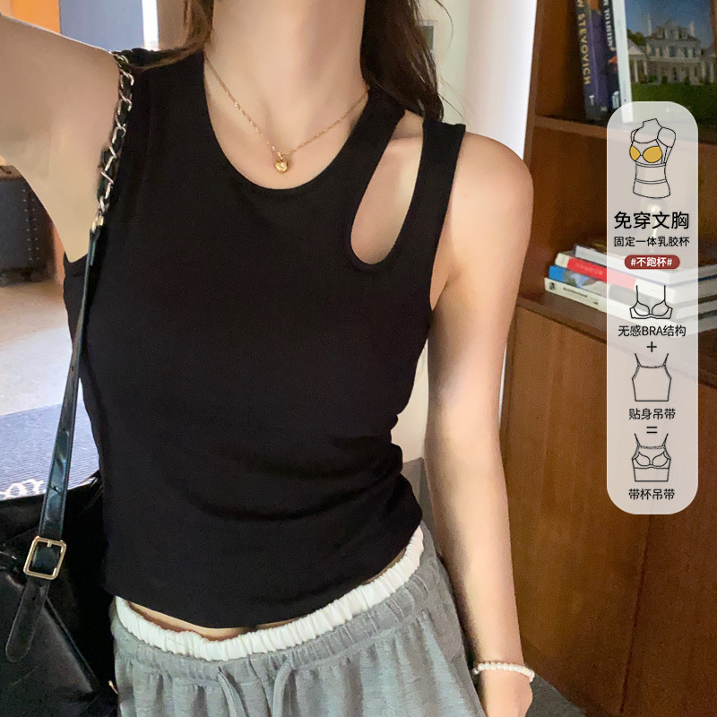 设计感小众背心女夏内搭新款斜肩带胸垫吊带挂脖打底上衣外穿