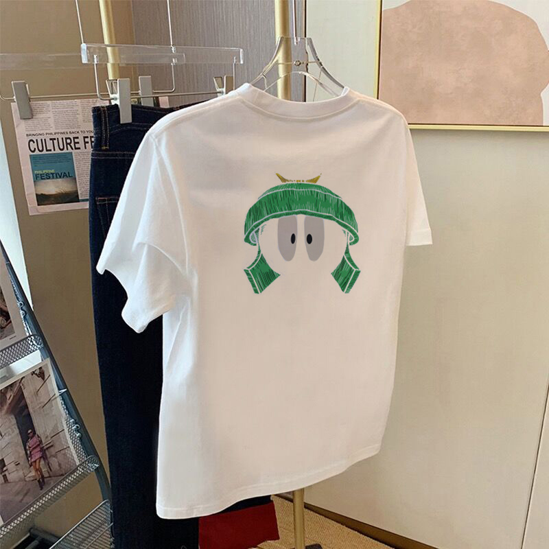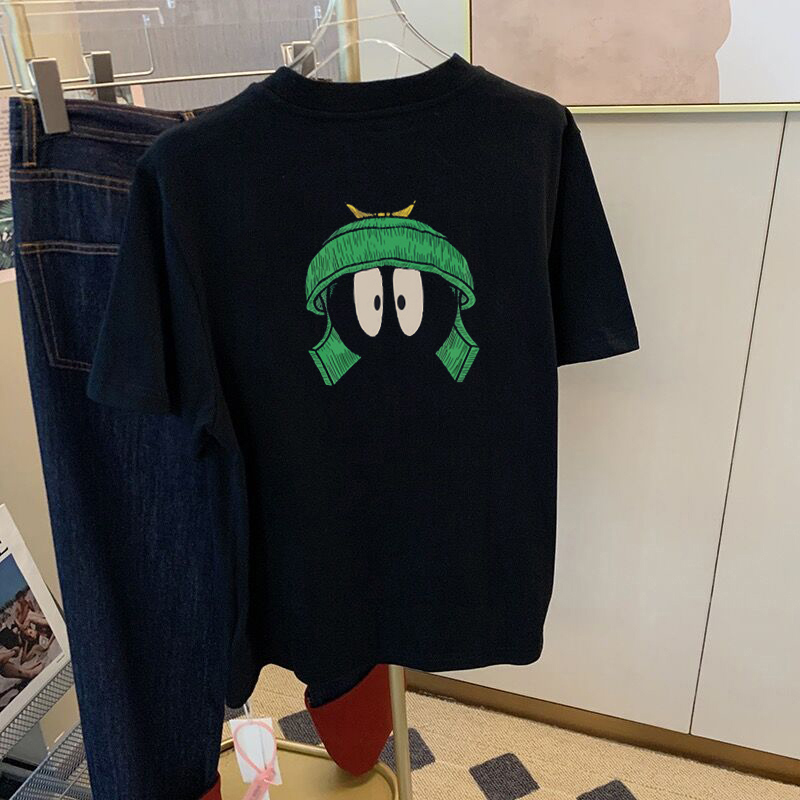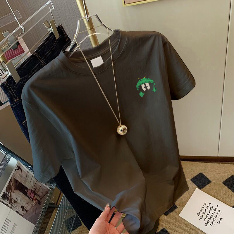 2025夏季新款全棉灰色短袖t恤女宽松百搭减龄卡通印花体恤上衣潮