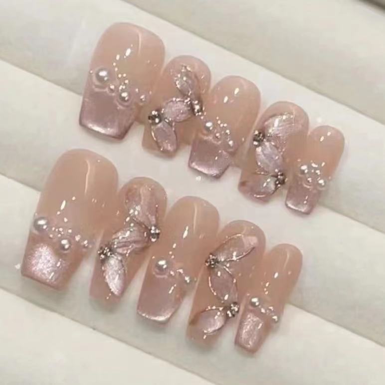 纯手工光疗穿戴甲丝滑飘带批发成品重复使用美甲贴片可拆卸猫