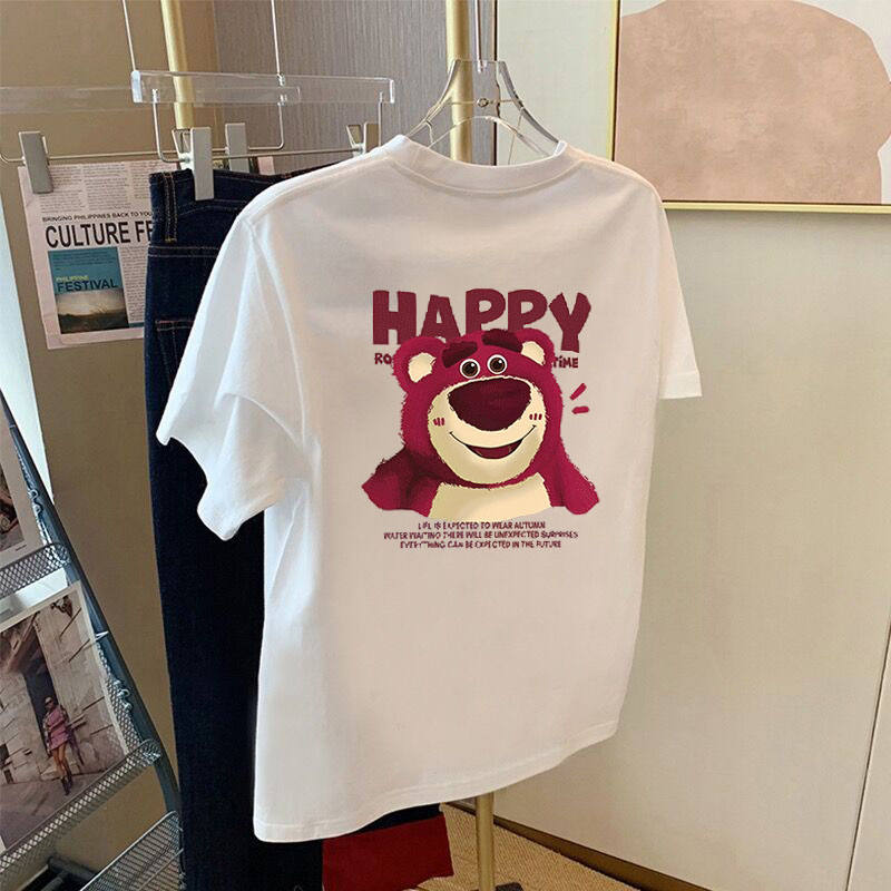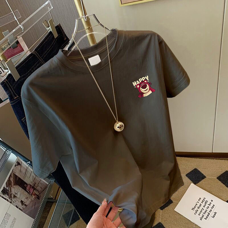 灰色印花纯棉正肩短袖t恤女夏季2025新款设计感小众宽松上衣体恤