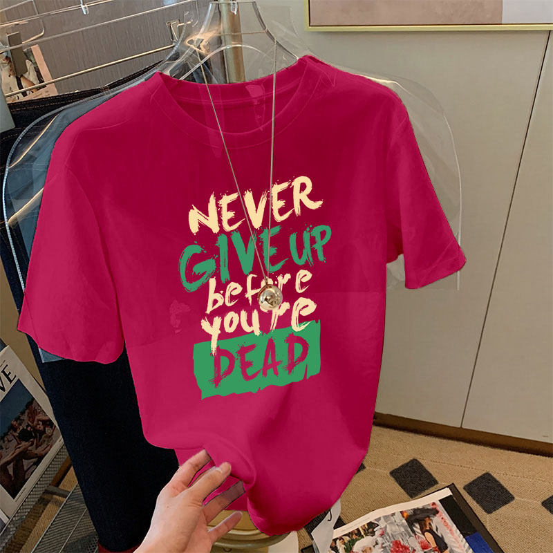 2025夏季新款火龙果色纯棉短袖t恤女宽松百搭时尚减龄体恤上衣潮