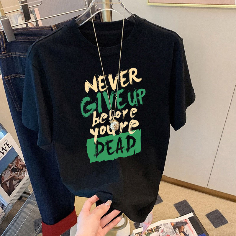 日系复古动漫印花黑色短袖T恤女夏季新款宽松上衣