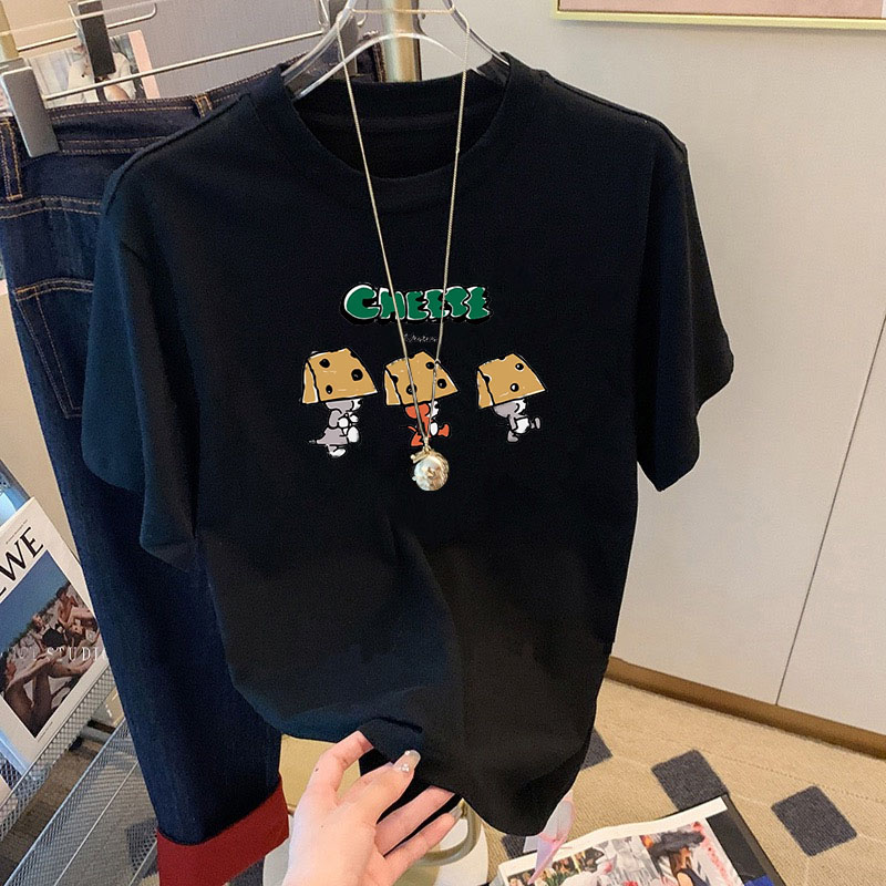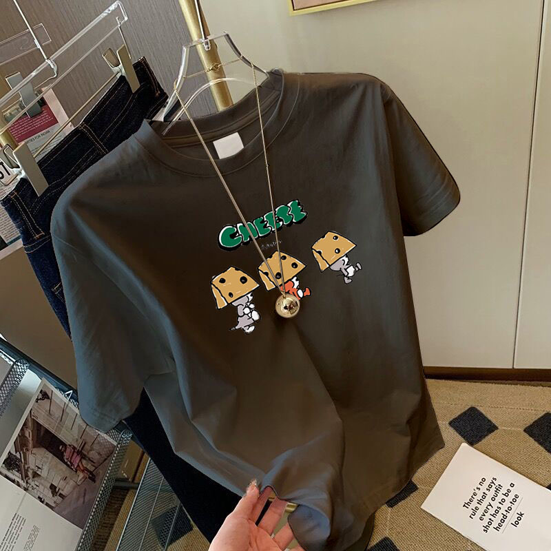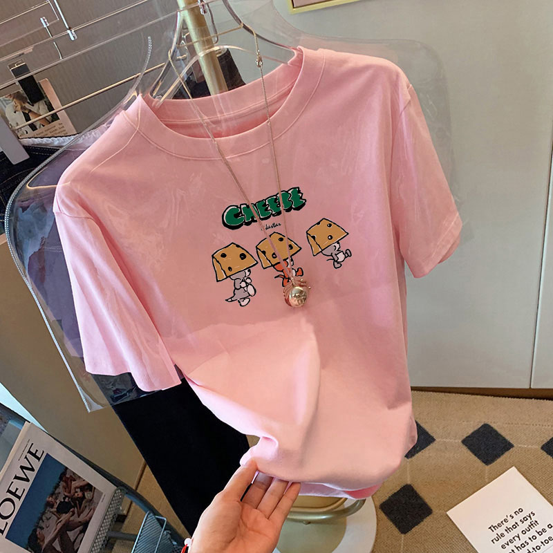 杏色纯棉短袖t恤女装2025年夏季新款韩版宽松纯棉设计感上衣ins潮