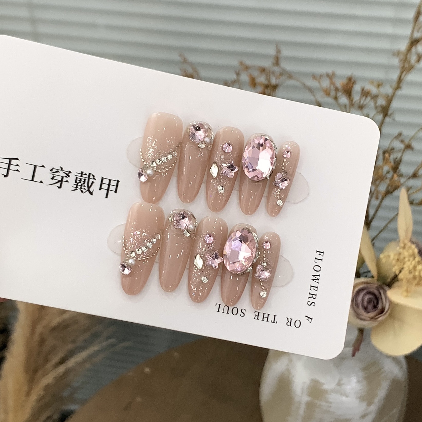 一只顾美甲厂【Y】纯手工钢珠链条K9粉钻全城热恋可拆卸穿戴甲