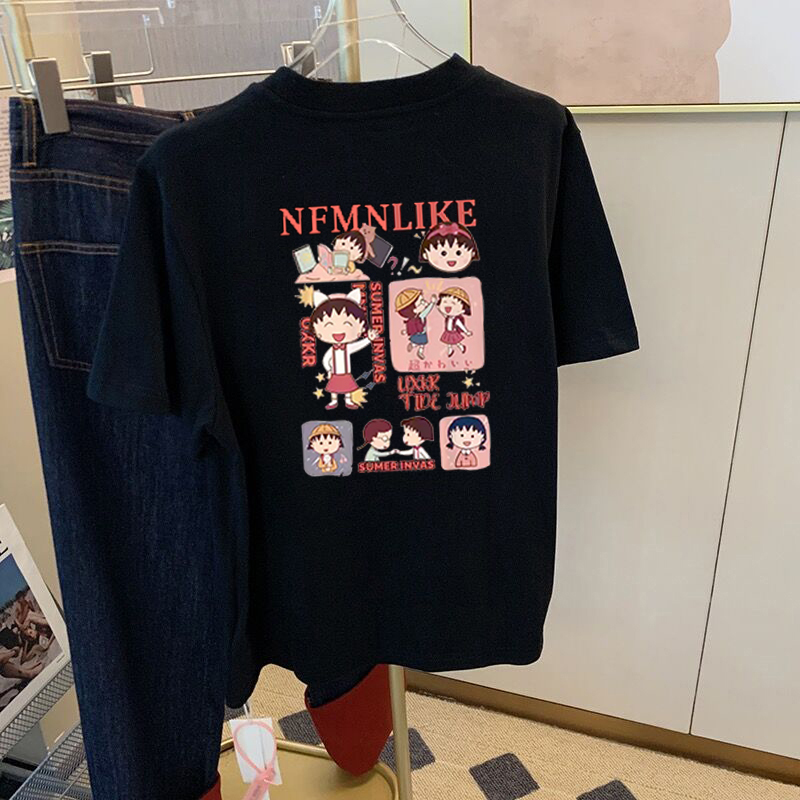 夏季十三行韩系小清新蝴蝶结印花百搭上衣新款正肩莫代尔短袖T恤