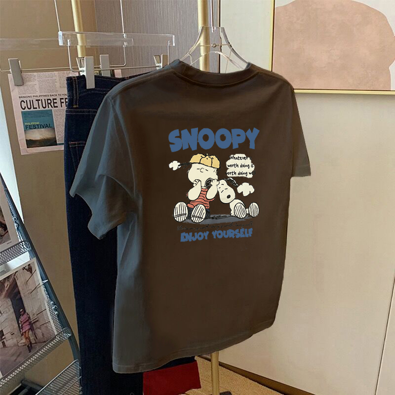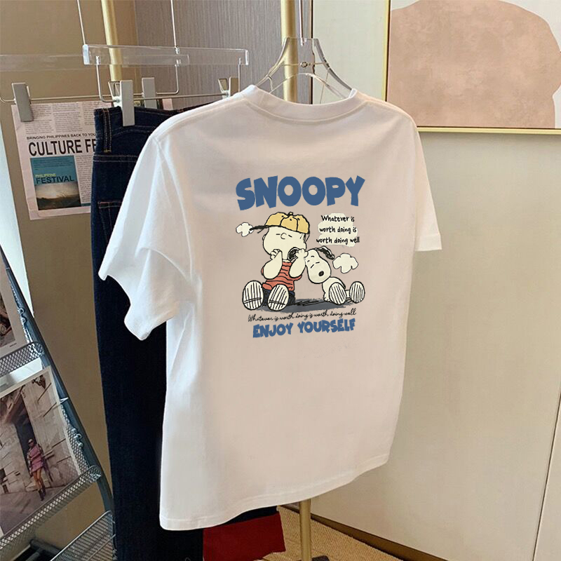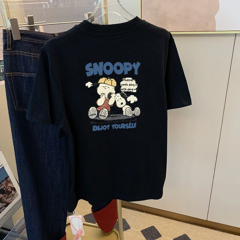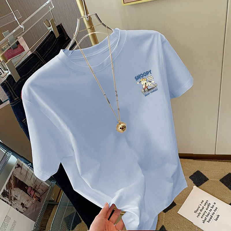 2025夏季新款纯棉蓝色短袖t恤女宽松百搭设计感小众卡通印花上衣