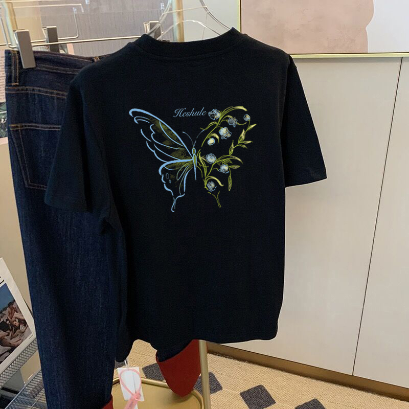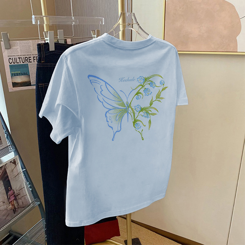 白色纯棉短袖t恤女设计感小众夏季2025新款宽松百搭正肩体恤上衣