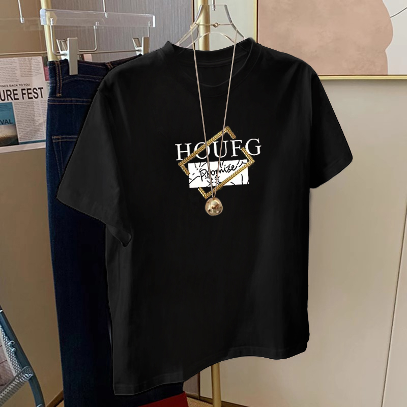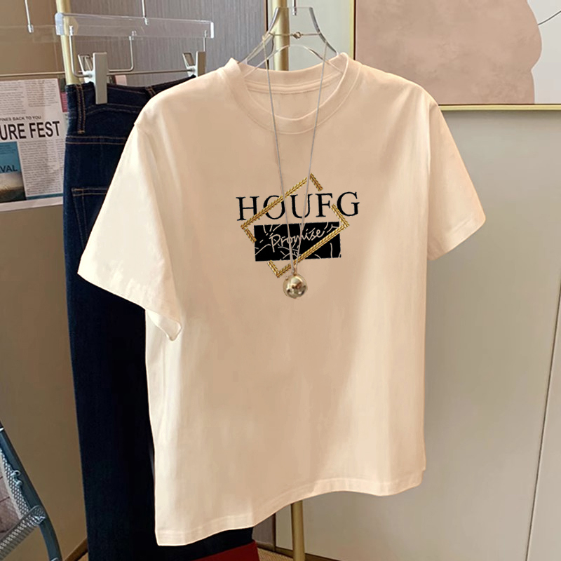 2025夏季新款纯棉灰色短袖t恤女宽松百搭正肩小个子洋气减龄上衣
