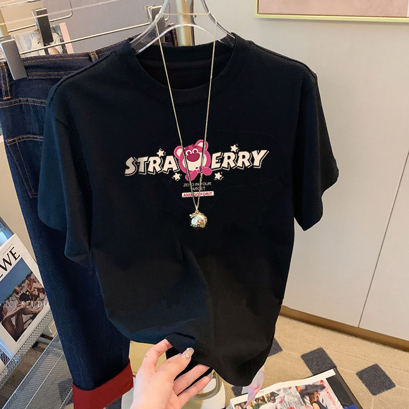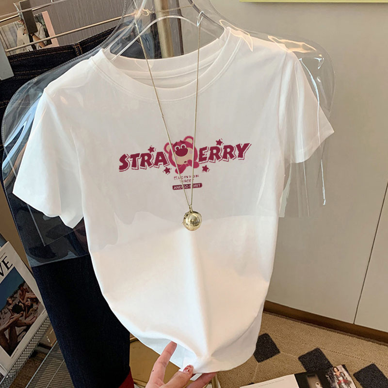 灰色小熊字母印花纯棉正肩短袖t恤女夏季2025新款设计感宽松上衣