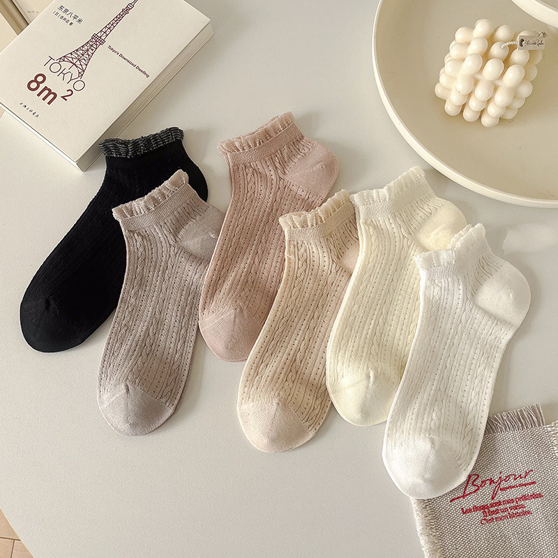 袜子夏季薄款镂空网眼花边袜女士春夏袜子无骨袜抗起球棉袜短筒袜