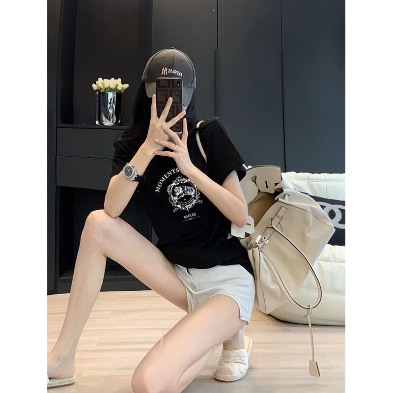 2025年夏季新款重磅白色短袖t恤女纯棉宽松百搭简约半袖体恤潮ins