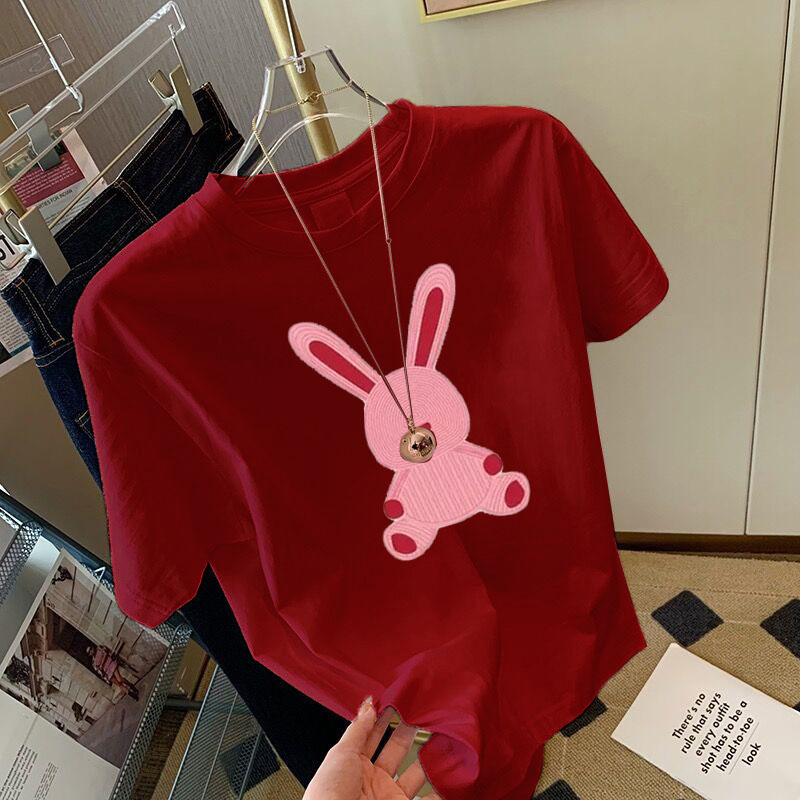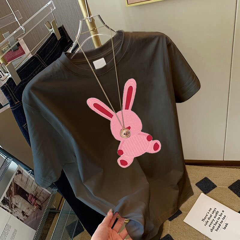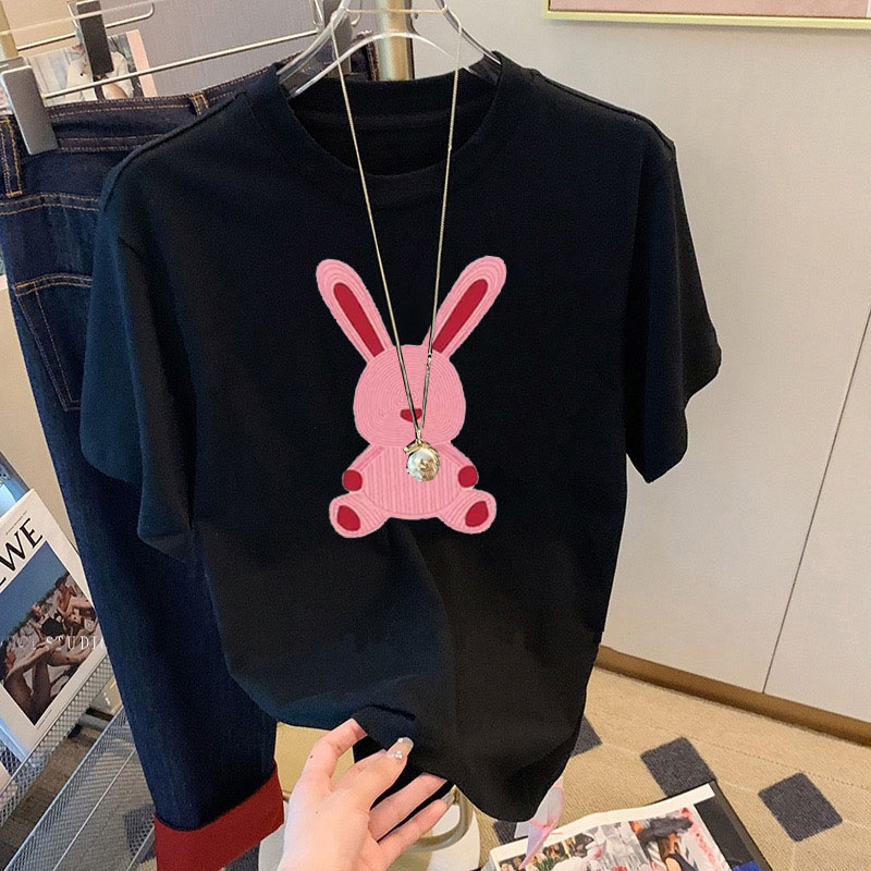 兔子短袖T恤女2025夏季新款圆领纯棉设计感小众半袖上衣白色内搭