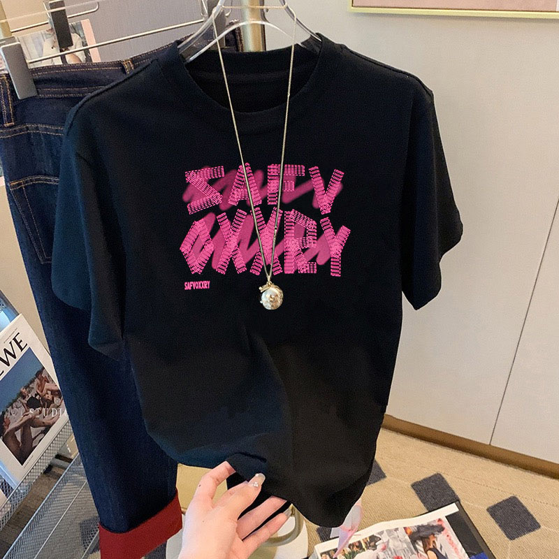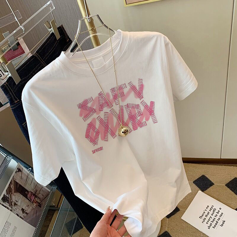 2025夏季设计感小众正肩红色纯棉短袖t恤女宽松百搭半袖体恤上衣