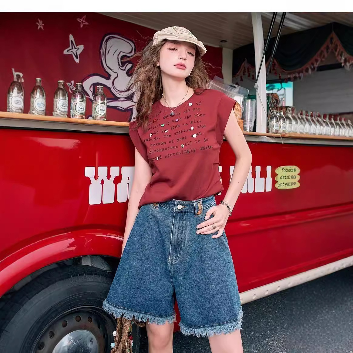 字母印花宽松短袖t恤女夏季新款纽扣设计显瘦上衣