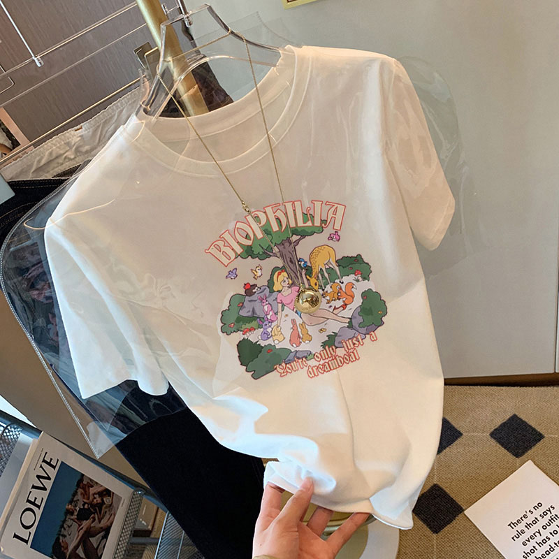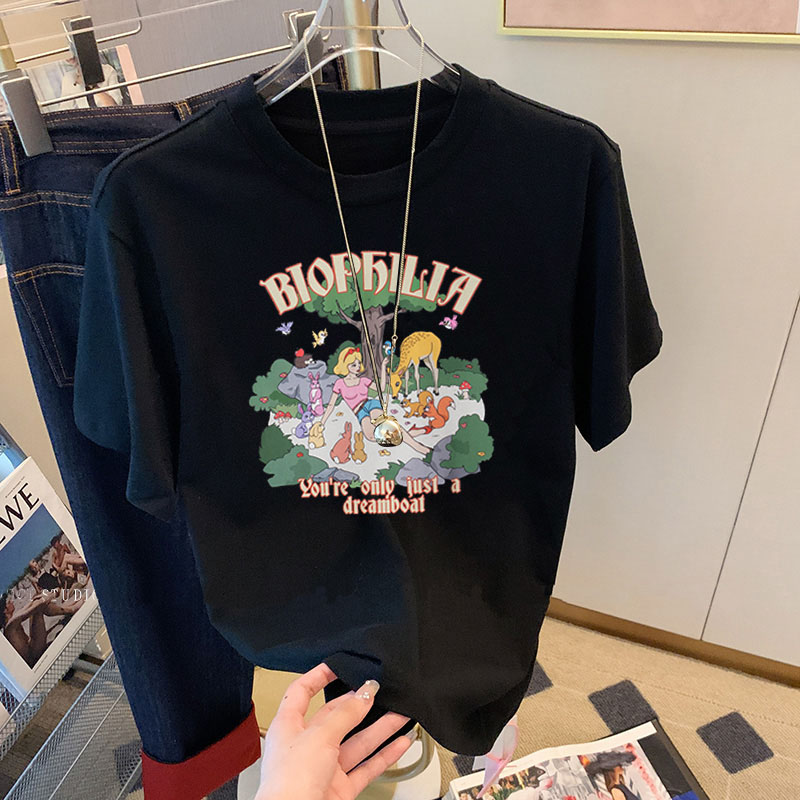 2025夏季新款设计感小众卡通图案纯棉粉色短袖t恤女宽松百搭上衣