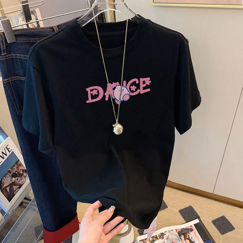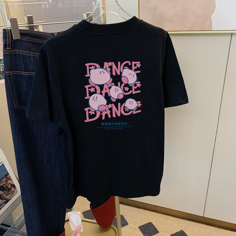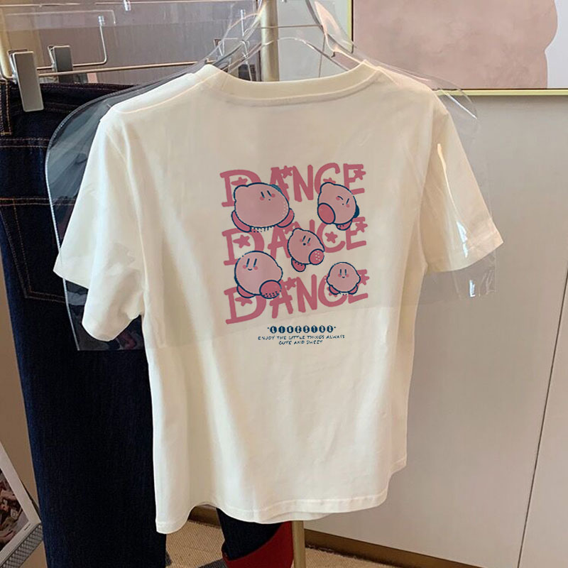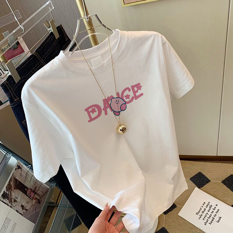 韩版宽松纯棉t恤女短袖小众卡通印花百搭圆领白色上衣夏季体恤女