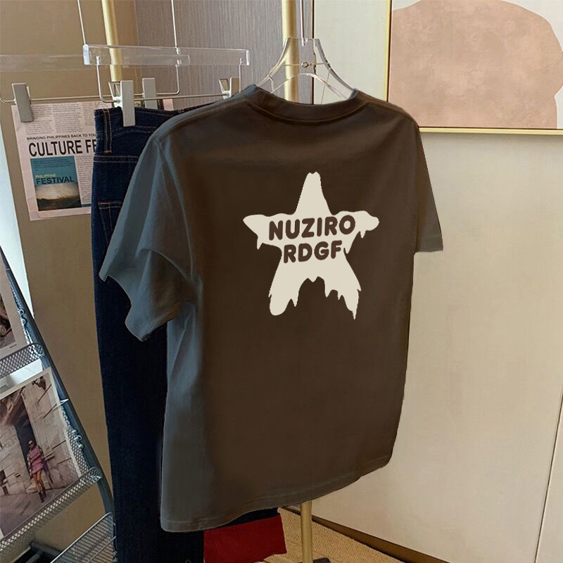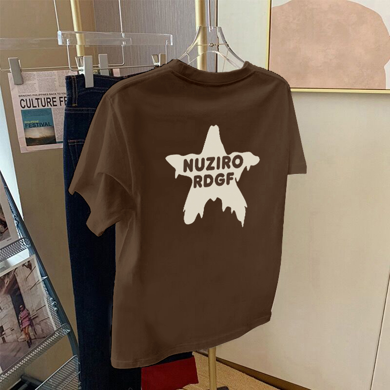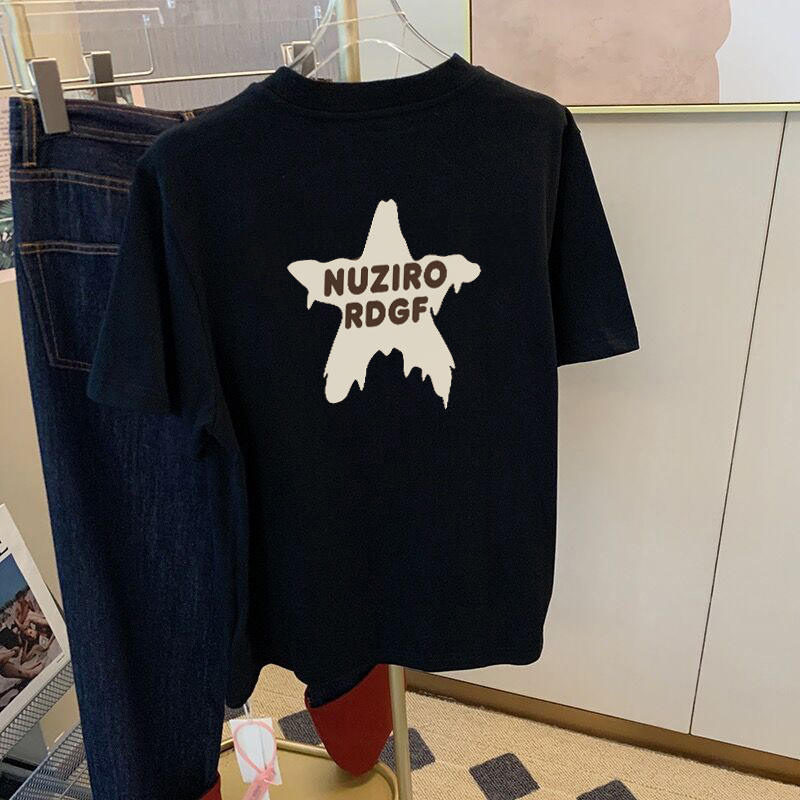 2025春季新款火龙果色纯棉短袖t恤女宽松百搭洋气印花上衣打底衫