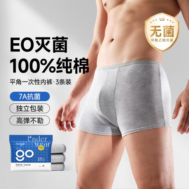 一次性男士平角内裤3条纯棉旅行灭菌便携舒适