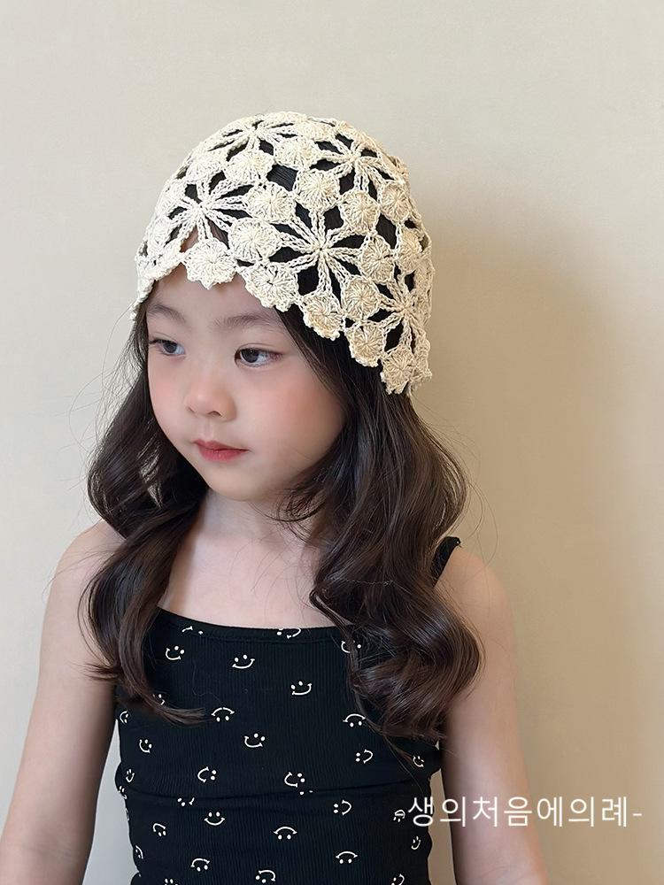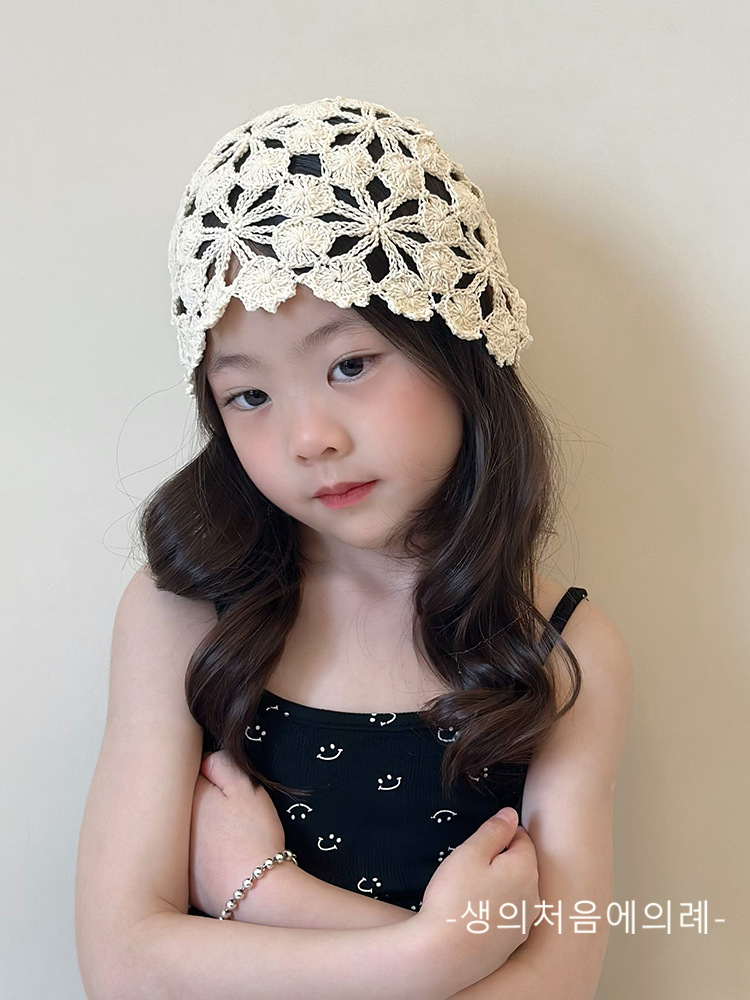 时髦精 花朵镂空包头帽儿童春夏季薄款针织帽女童洋气时尚遮阳帽