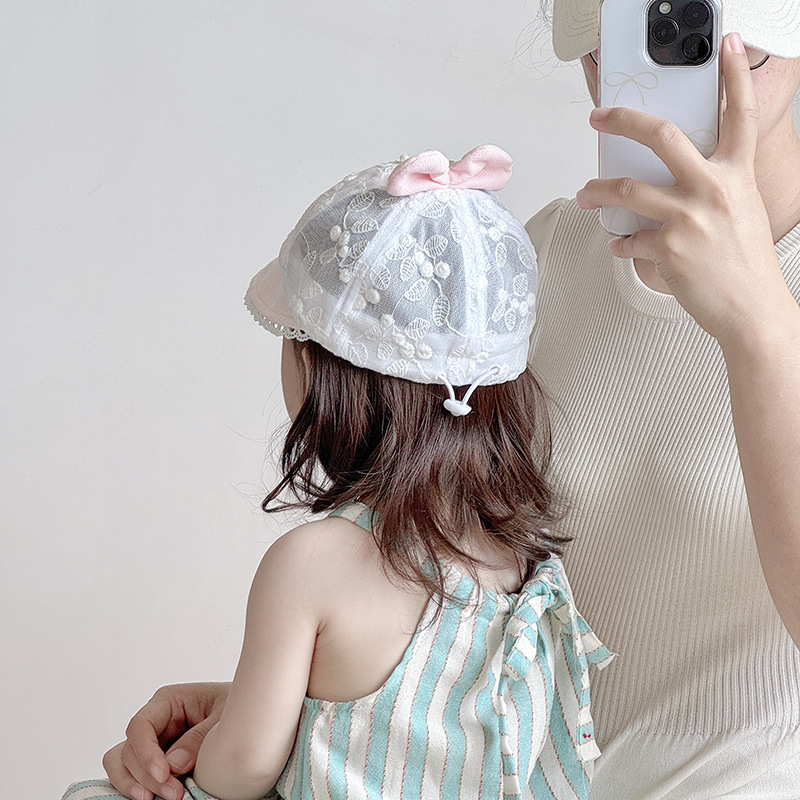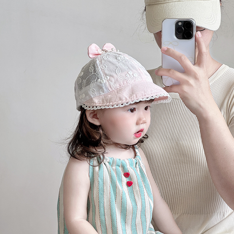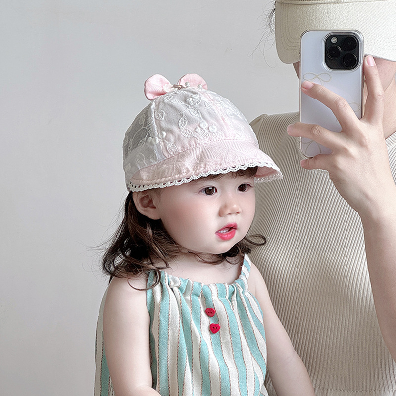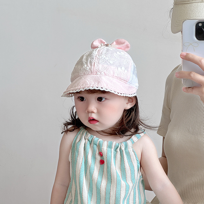 女宝宝帽子夏季薄款透气网眼大帽檐遮阳防晒鸭舌帽女童甜美棒球帽