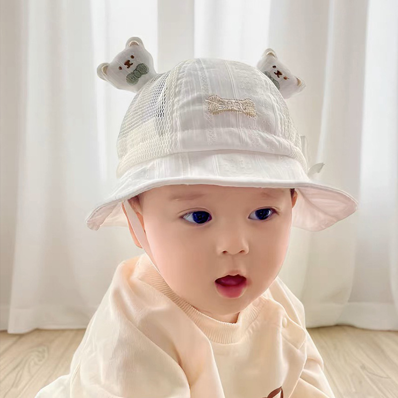 婴儿帽子春夏季超萌小月龄防晒网款渔夫帽夏天男女宝宝遮阳太阳帽