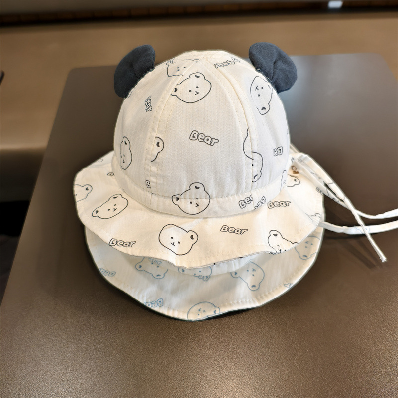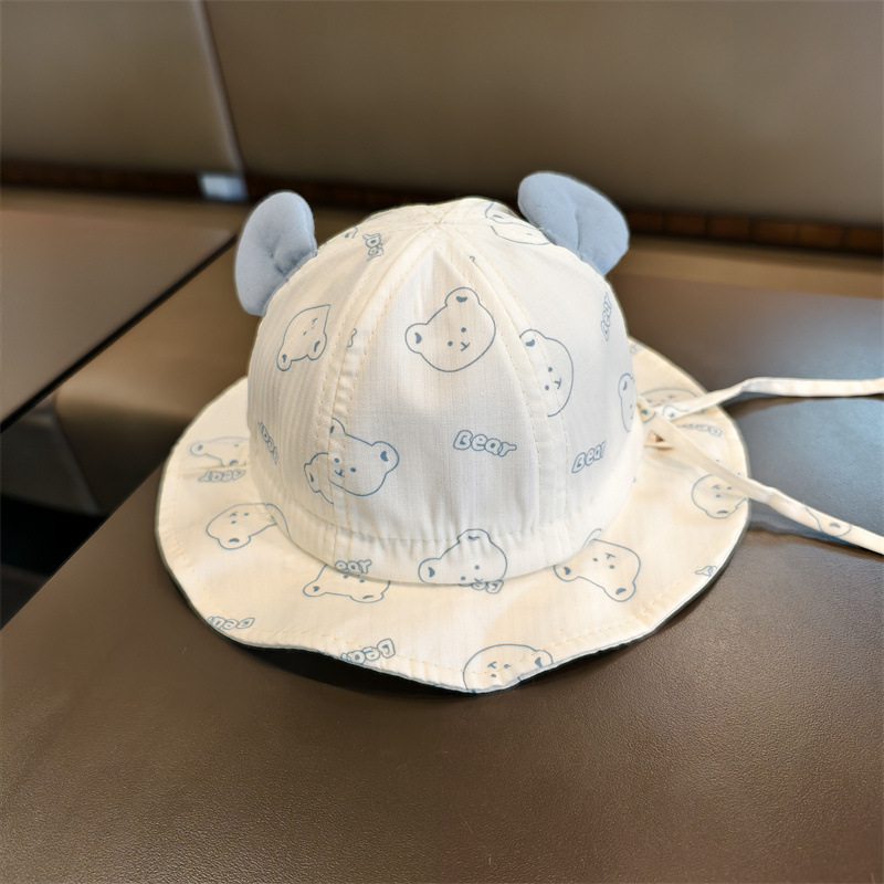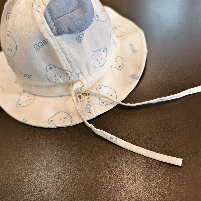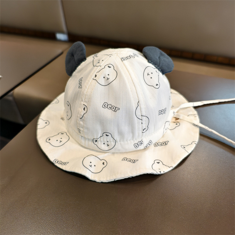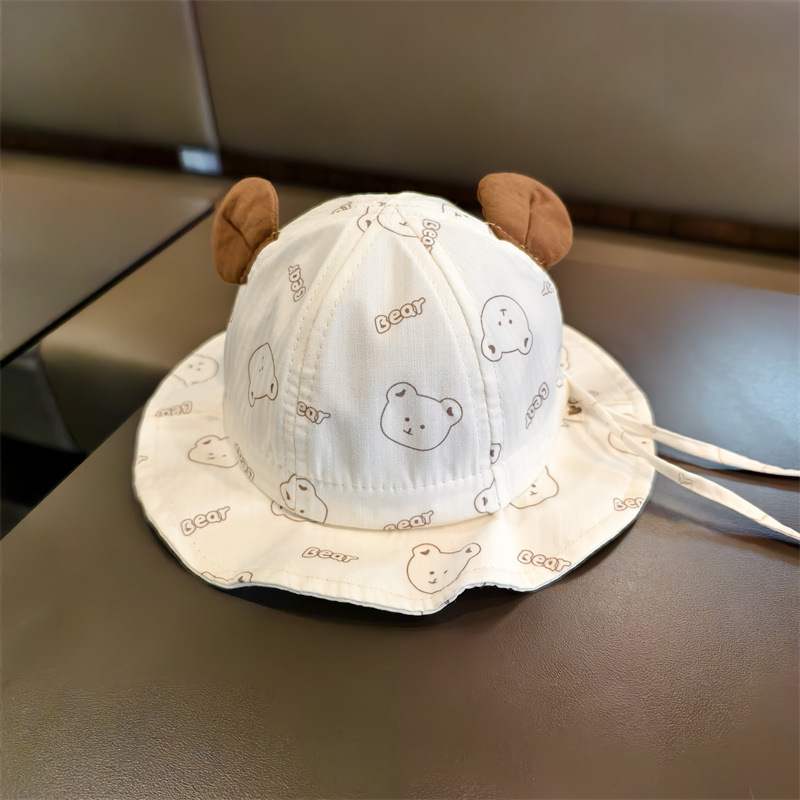 婴儿帽子春夏季薄款渔夫帽男女超萌小熊遮阳帽宝宝外出防晒太阳帽
