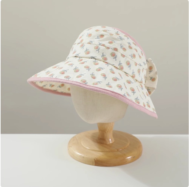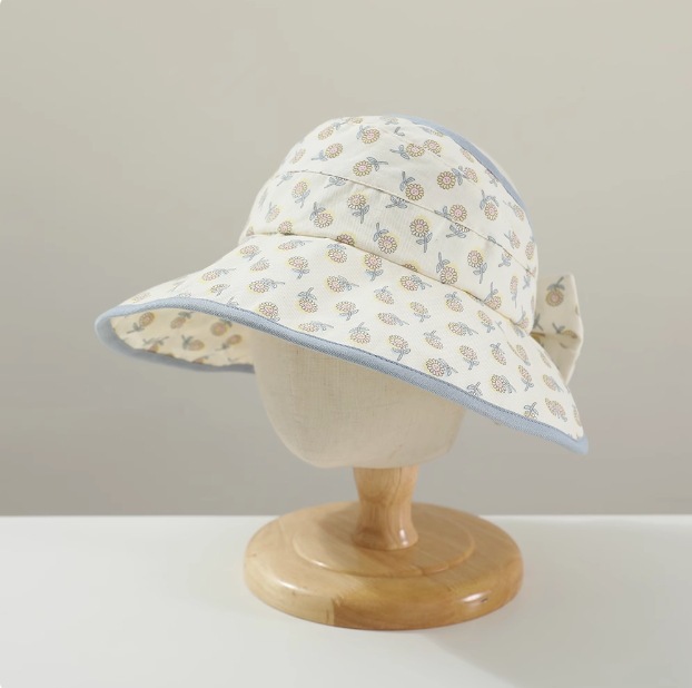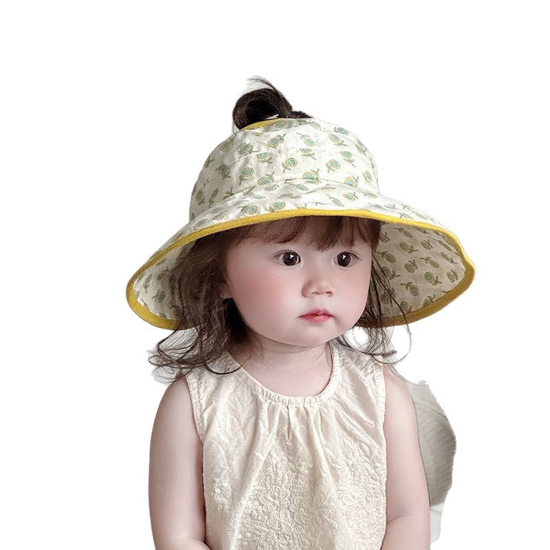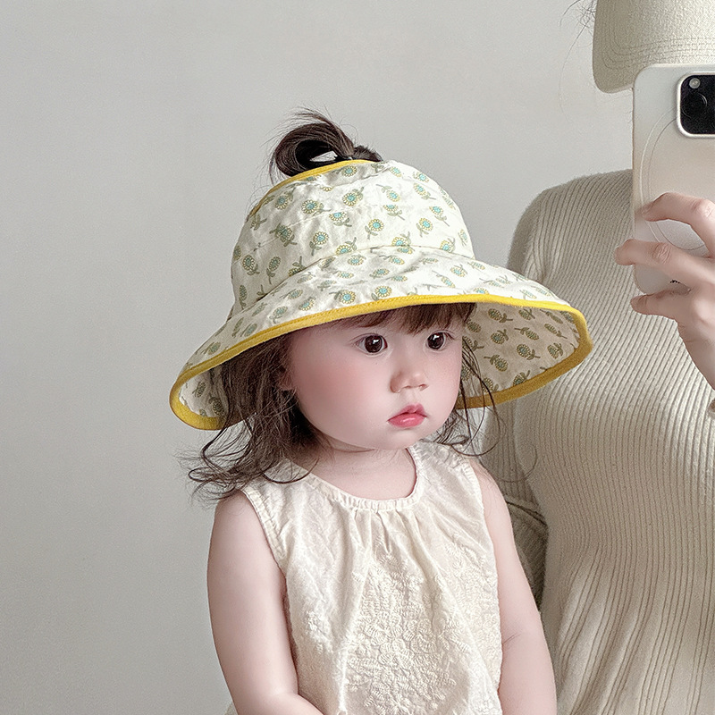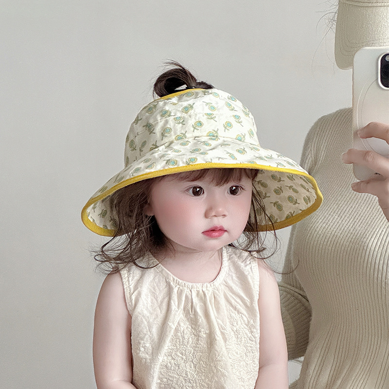 宝宝帽子夏季空顶帽韩洋气小碎花遮阳帽儿童出游大檐防晒帽太阳帽
