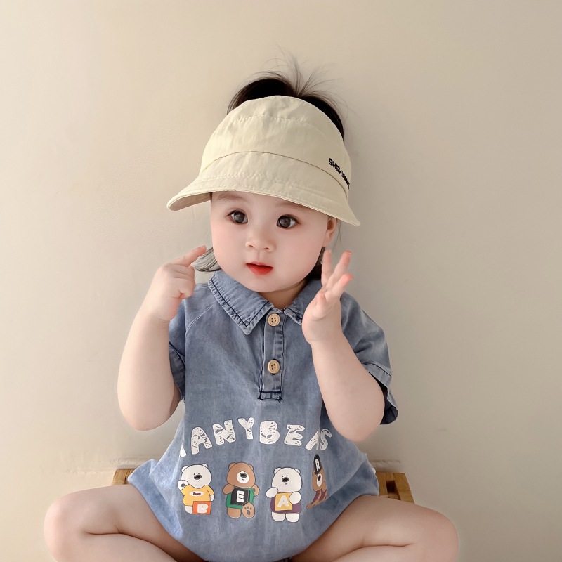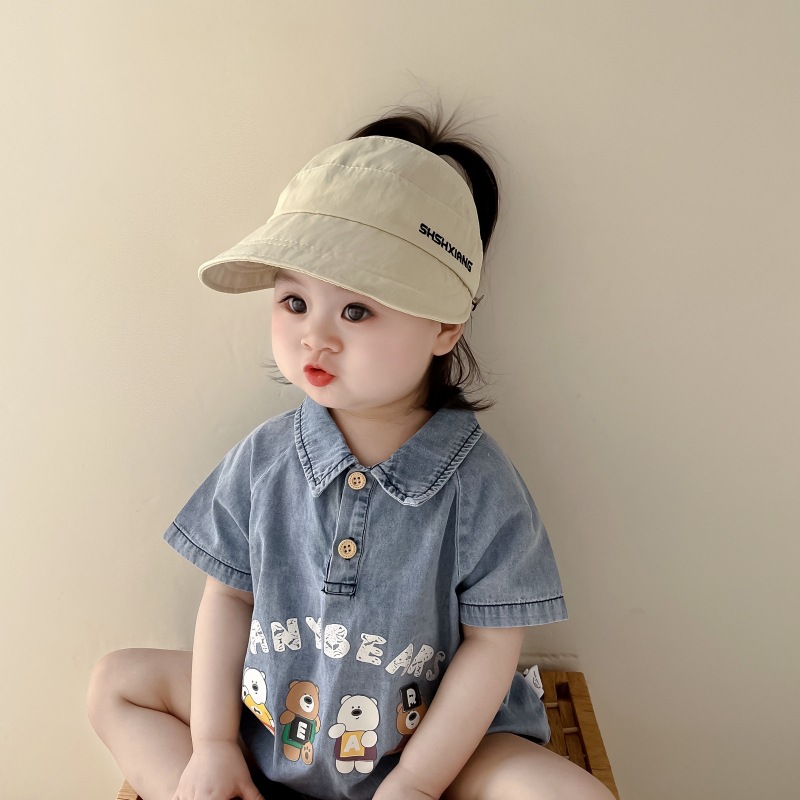 儿童防晒帽夏季女童空顶帽速干字母宝宝户外大檐遮阳帽婴儿太阳帽