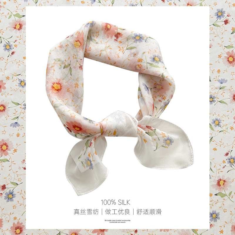 日系温柔樱花色高档桑蚕丝丝巾女春秋季真丝雪纺中方巾围巾披肩女