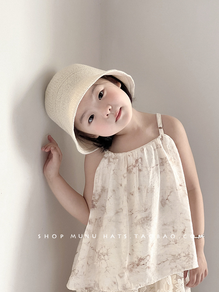 女童帽子春夏洋气韩版草编水桶帽纯色盆帽ins穿搭宝宝出游遮阳帽