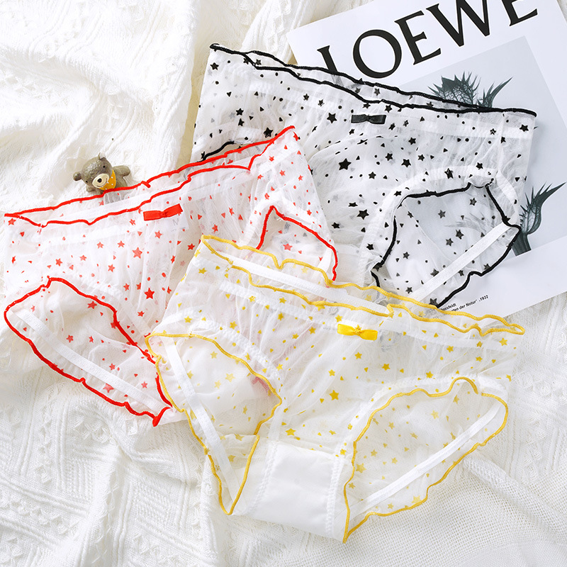 新款实绒星星网点蕾丝性感无痕女士内裤中腰纯欲风少女清新内裤女