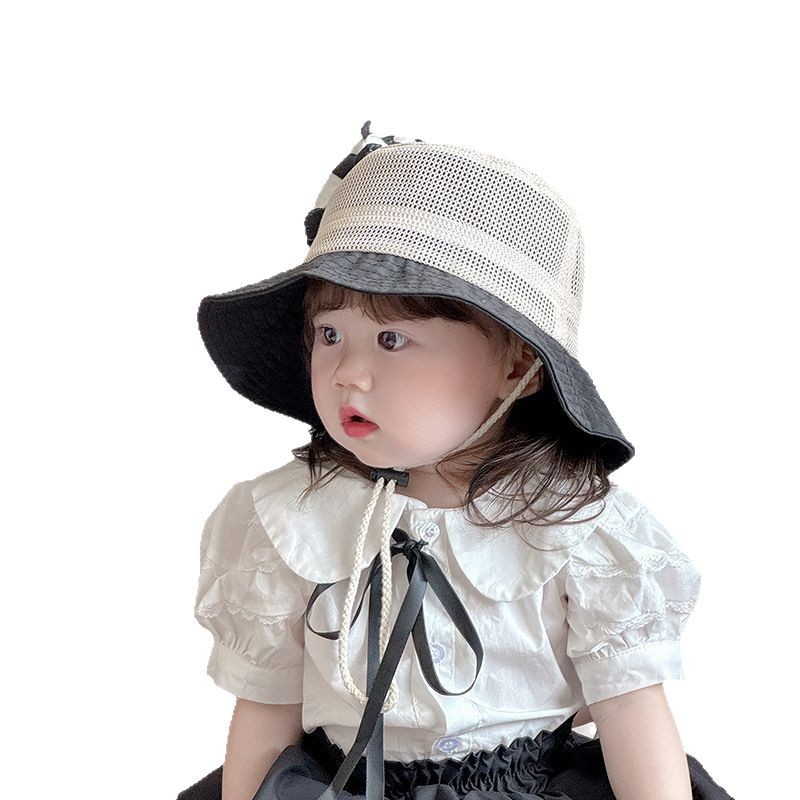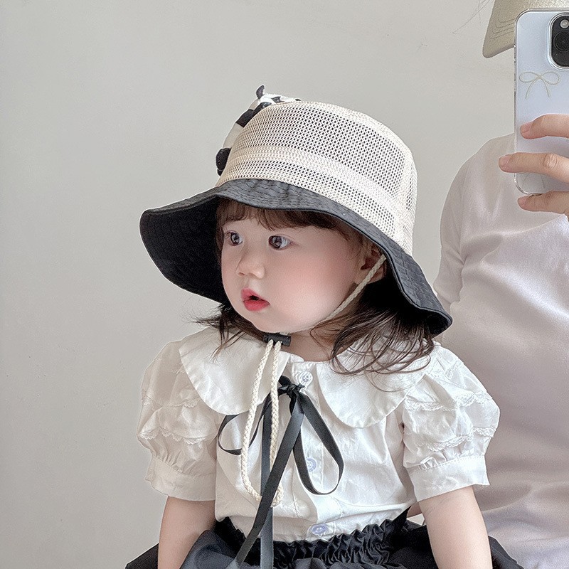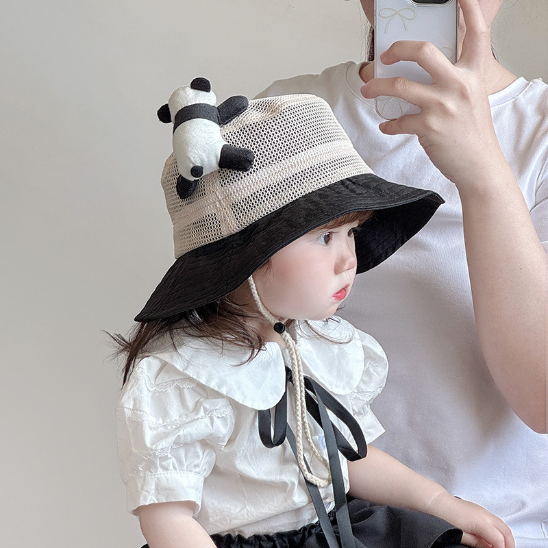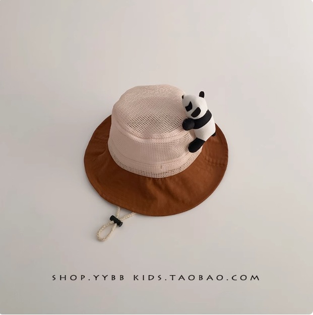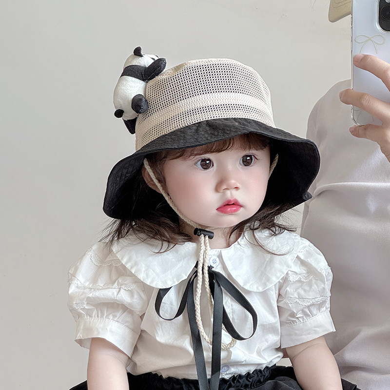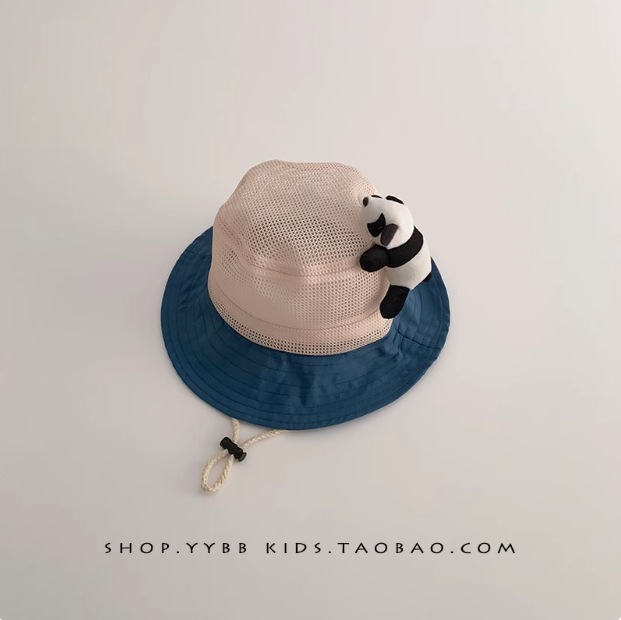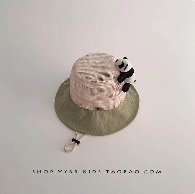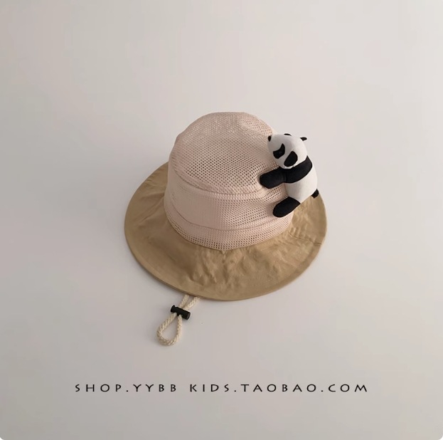 宝宝遮阳帽子春夏季薄款速干大檐可爱熊猫带披肩护脖男女儿童帽潮