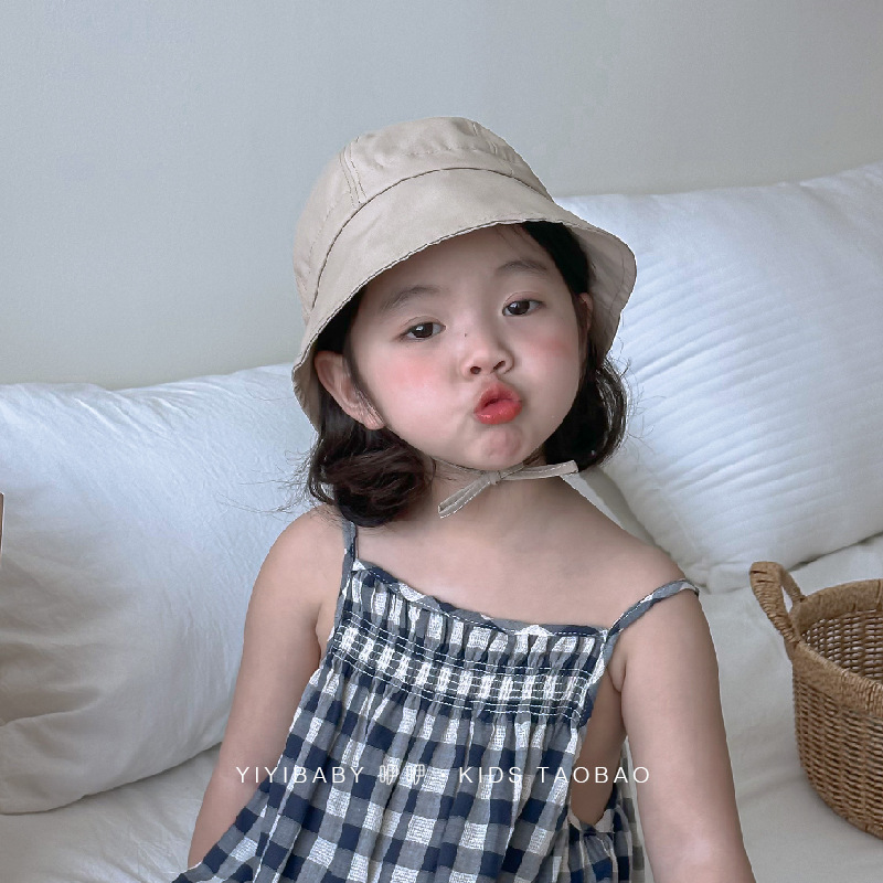 儿童渔夫帽子春夏季男女童韩系简约纯色百搭凹造型洋气宝宝防晒帽