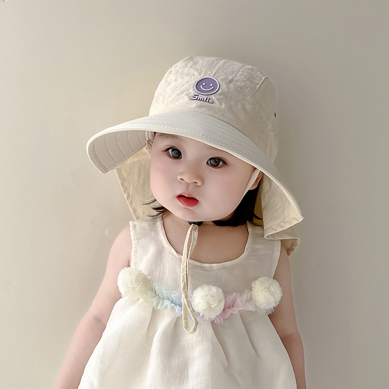 儿童帽子夏季薄款透气网眼大帽檐防晒披肩帽男女宝宝遮阳太阳帽潮