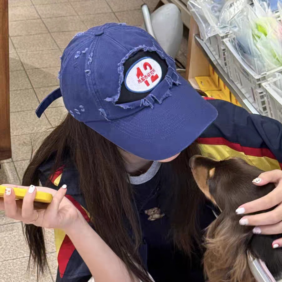 小众街头潮牌棒球帽女加宽加大鸭舌帽显脸小个性做旧破洞帽子男潮