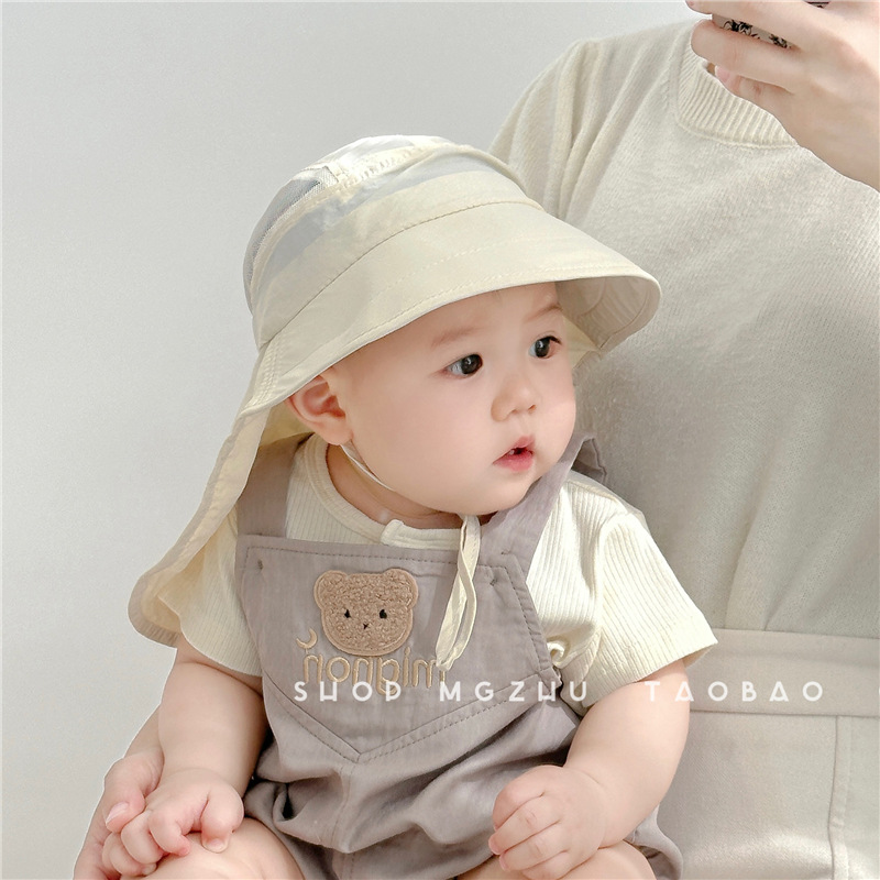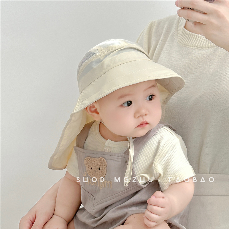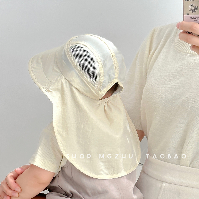 婴儿帽子夏季速干帽男女童遮阳防晒大檐披肩帽宝宝防紫外线渔夫帽