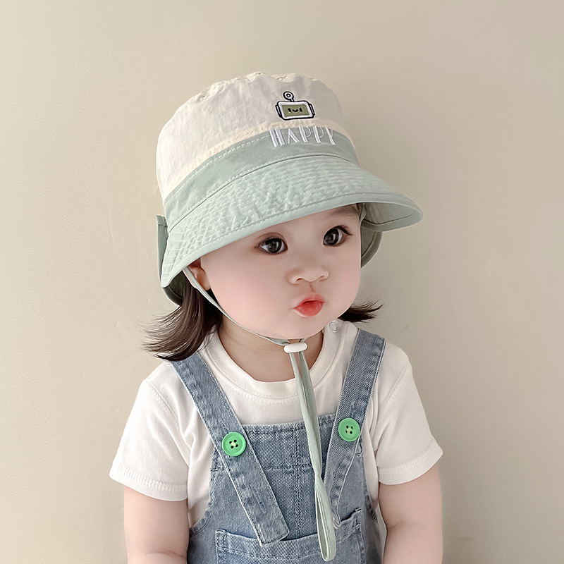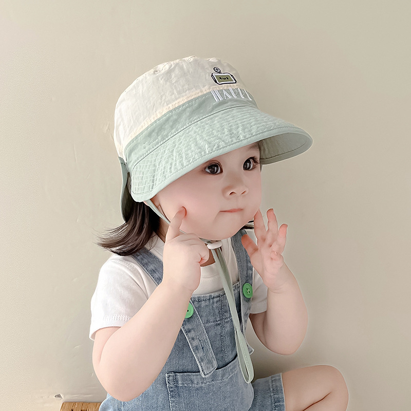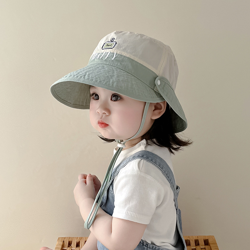 儿童帽子夏季薄款速干大檐渔夫帽男女宝宝遮阳防晒可拆卸太阳盆帽