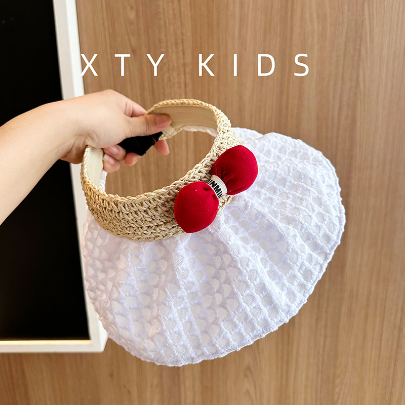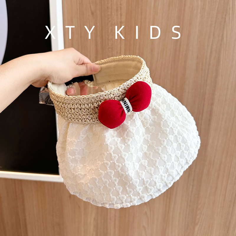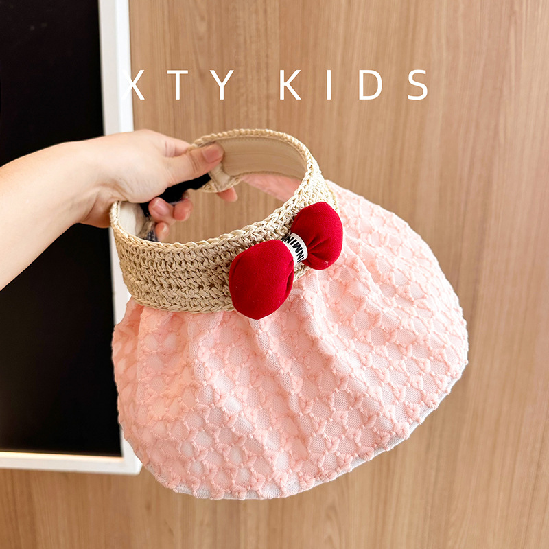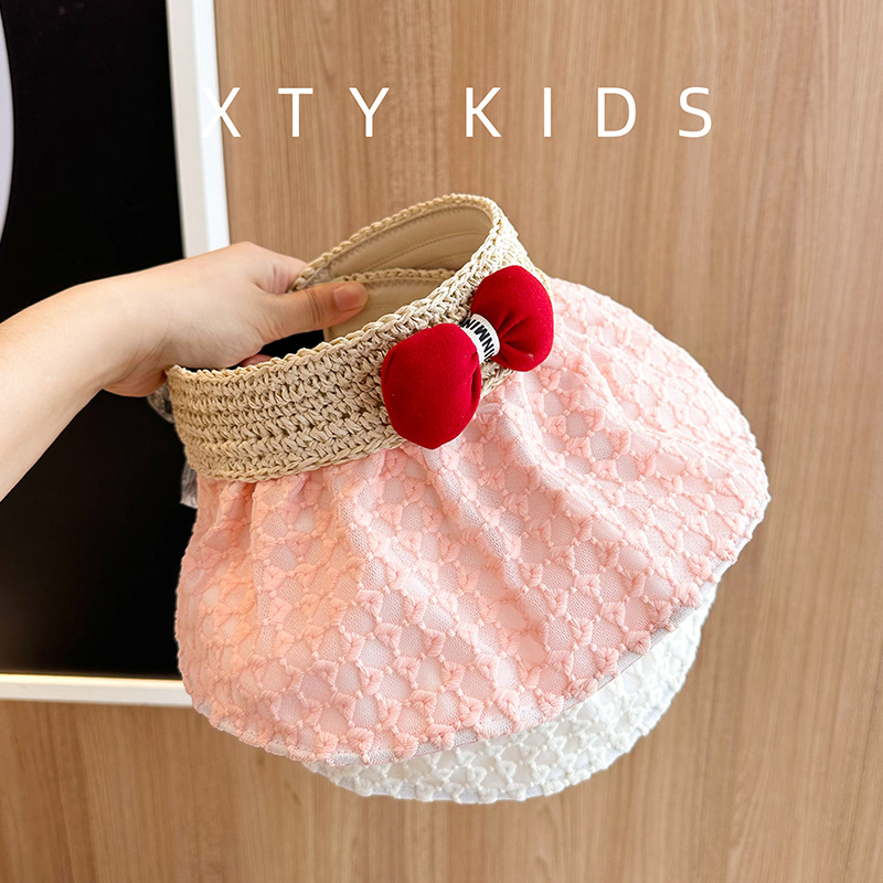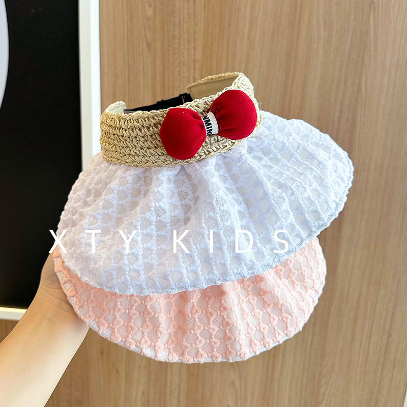 儿童空顶防晒帽夏季大檐洋气蝴蝶结公主户外防紫外线宝宝遮阳帽子