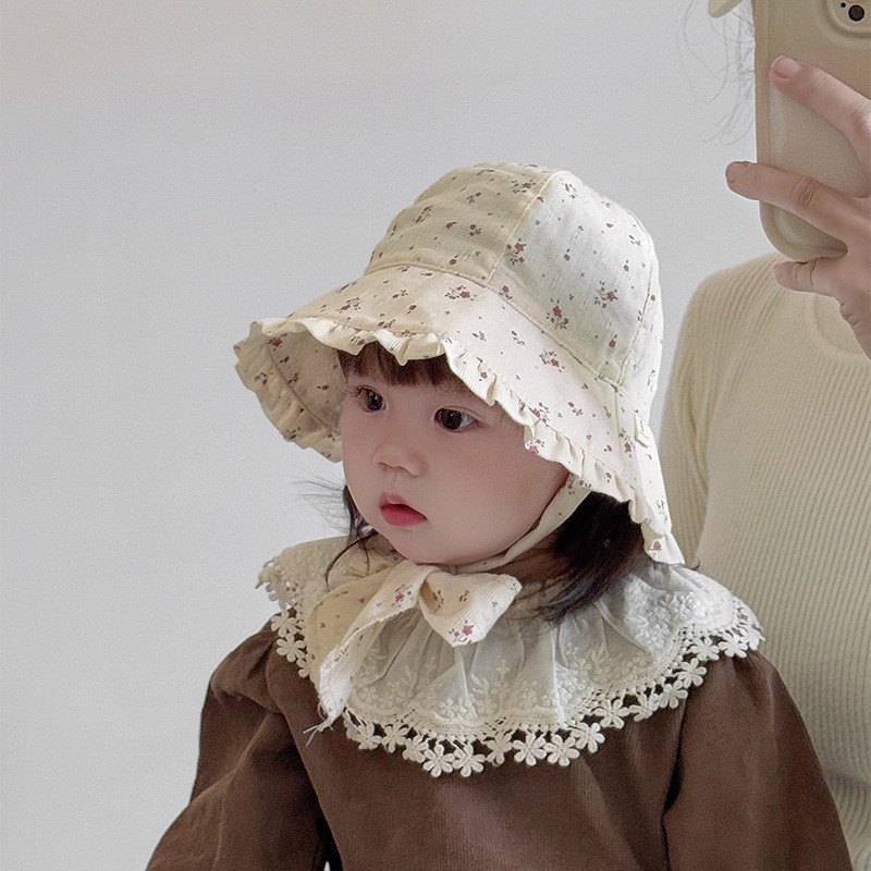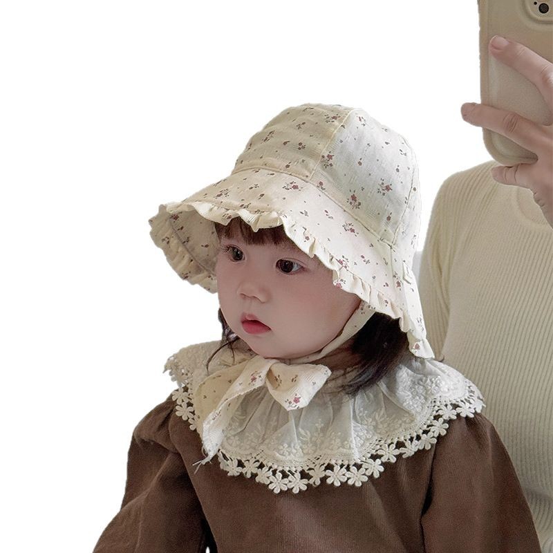 宝宝帽子春夏款渔夫帽韩版小碎花大檐遮阳帽防晒帽婴幼儿出游盆帽