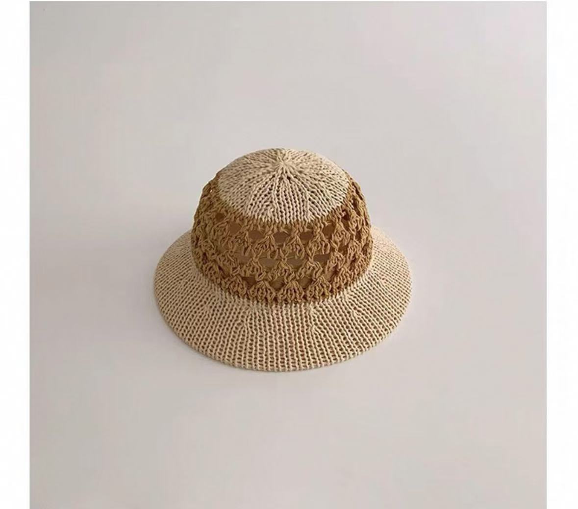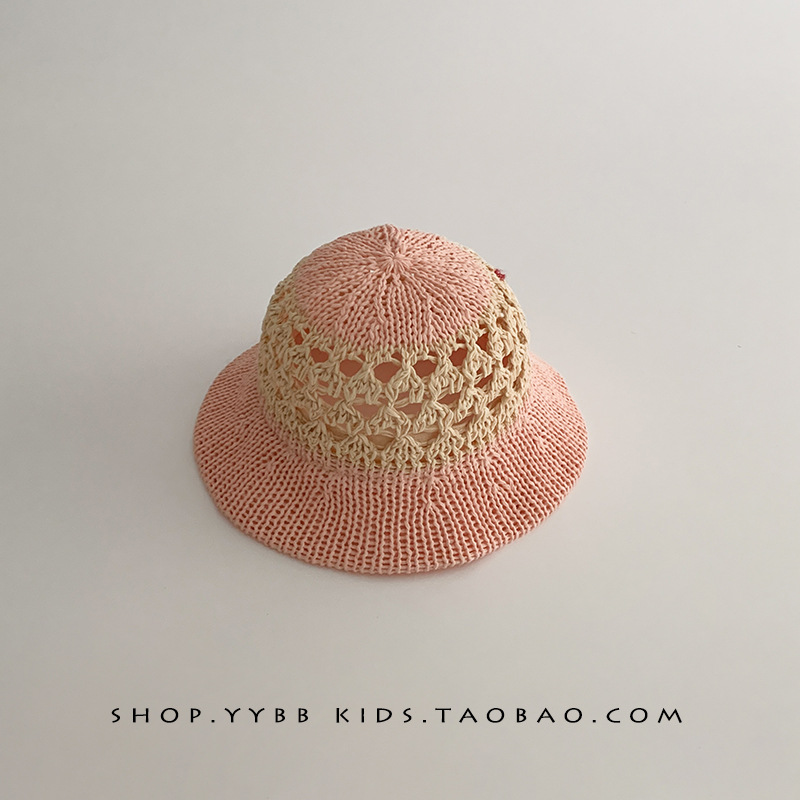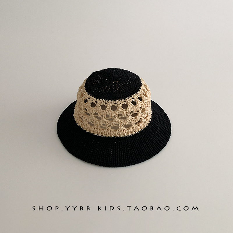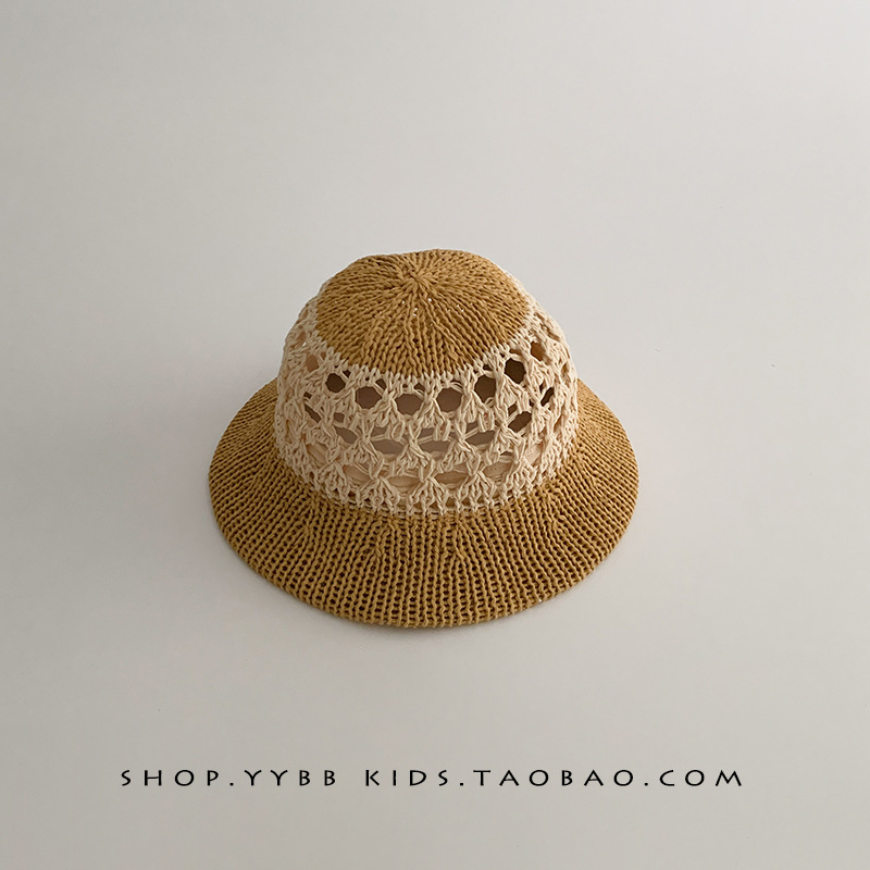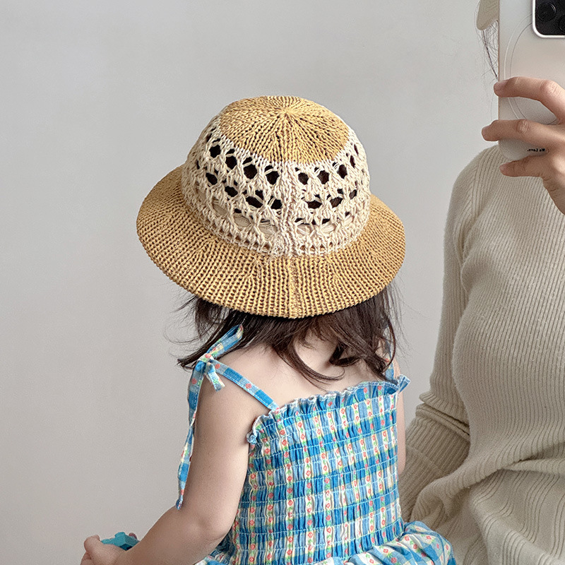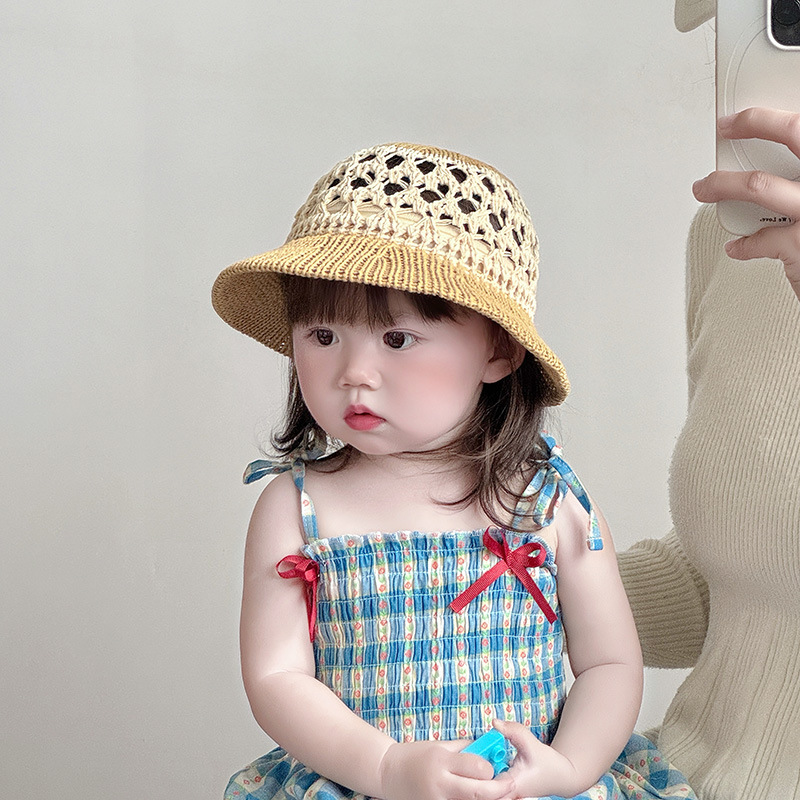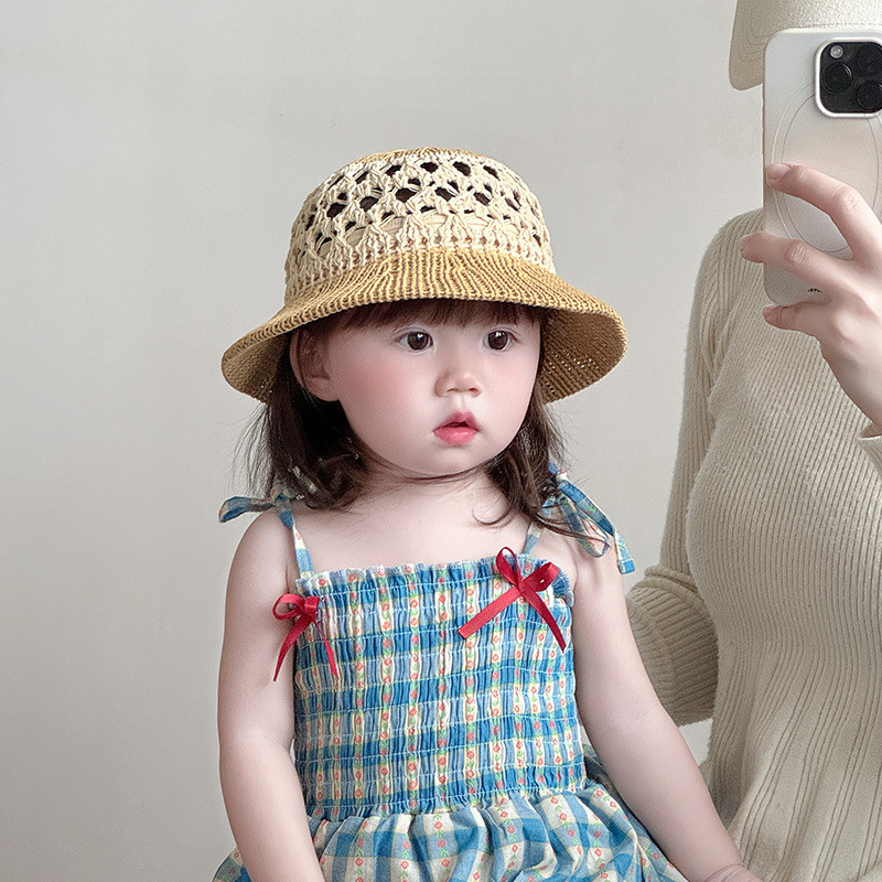 潮流儿童帽子夏季薄款透气镂空编织大帽檐草帽男女宝宝遮阳太阳帽