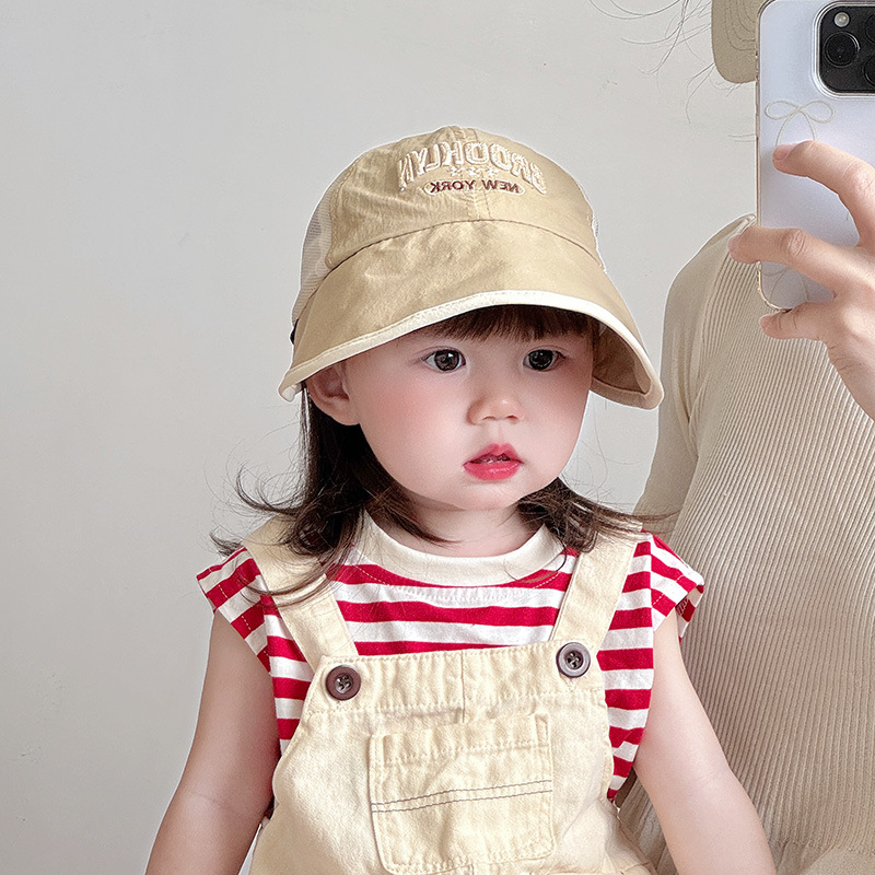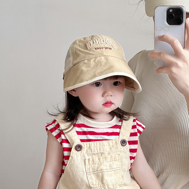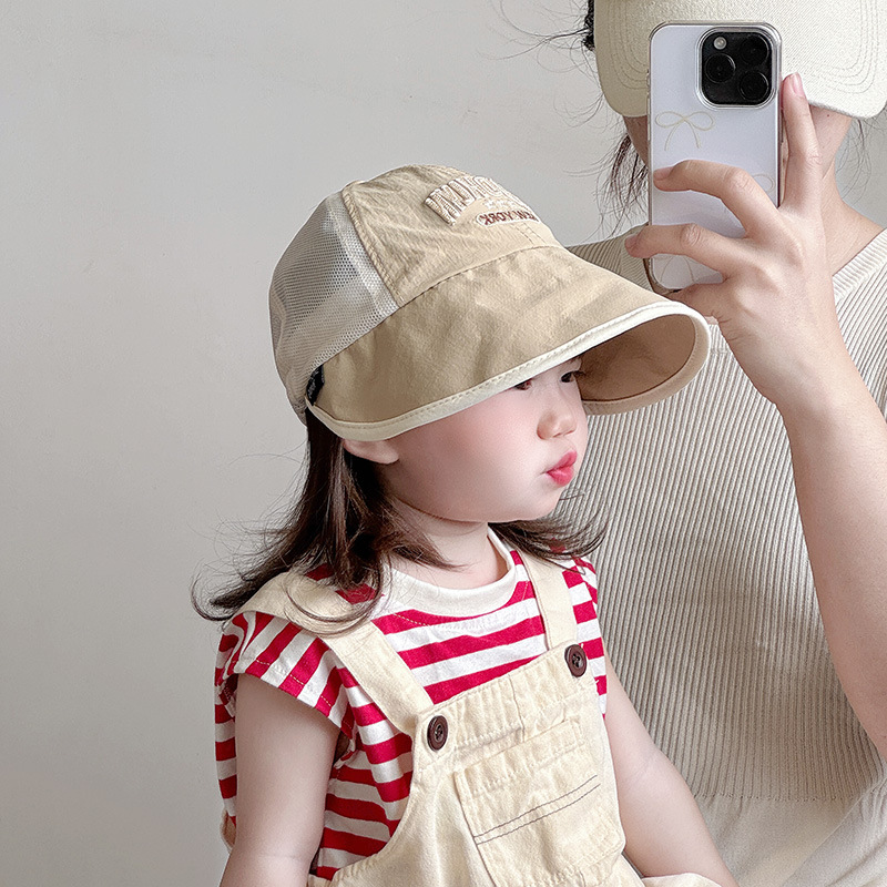 儿童帽子夏季薄款大帽檐透气速干鸭舌网帽男女宝宝遮阳防晒棒球帽
