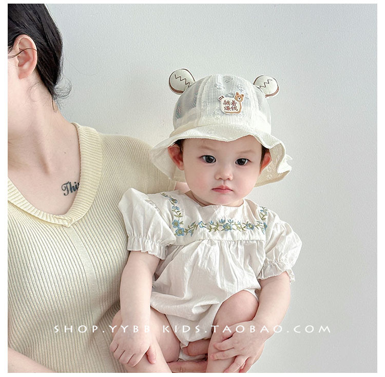婴儿帽子夏季薄款透气网眼可爱渔夫帽男女宝宝小月龄遮阳防晒盆帽