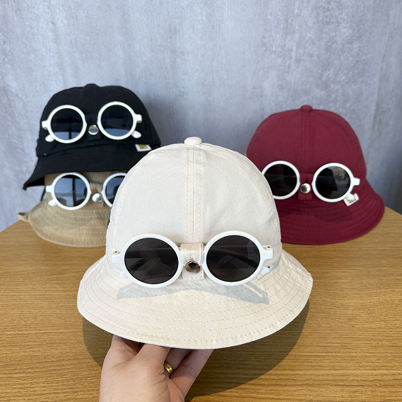 2025新款宝宝春秋夏帽子自带墨镜遮阳防晒帽男女童户外百搭渔夫帽