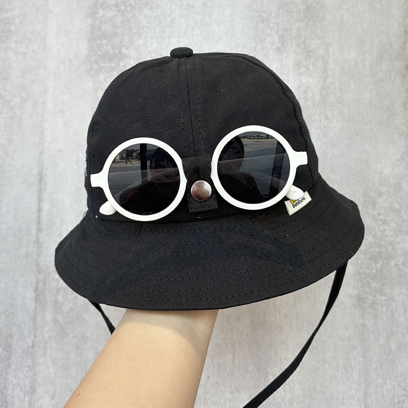 - 黑色-墨镜渔夫帽+头围46-49cm/仅供参考10个月-3岁+均码(以头围为准)