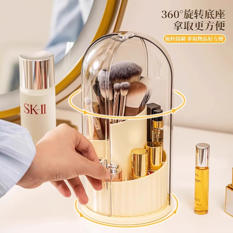 化妆刷收纳筒旋转防尘梳妆台化妆品收纳盒口红眼影置物架桌面笔筒
