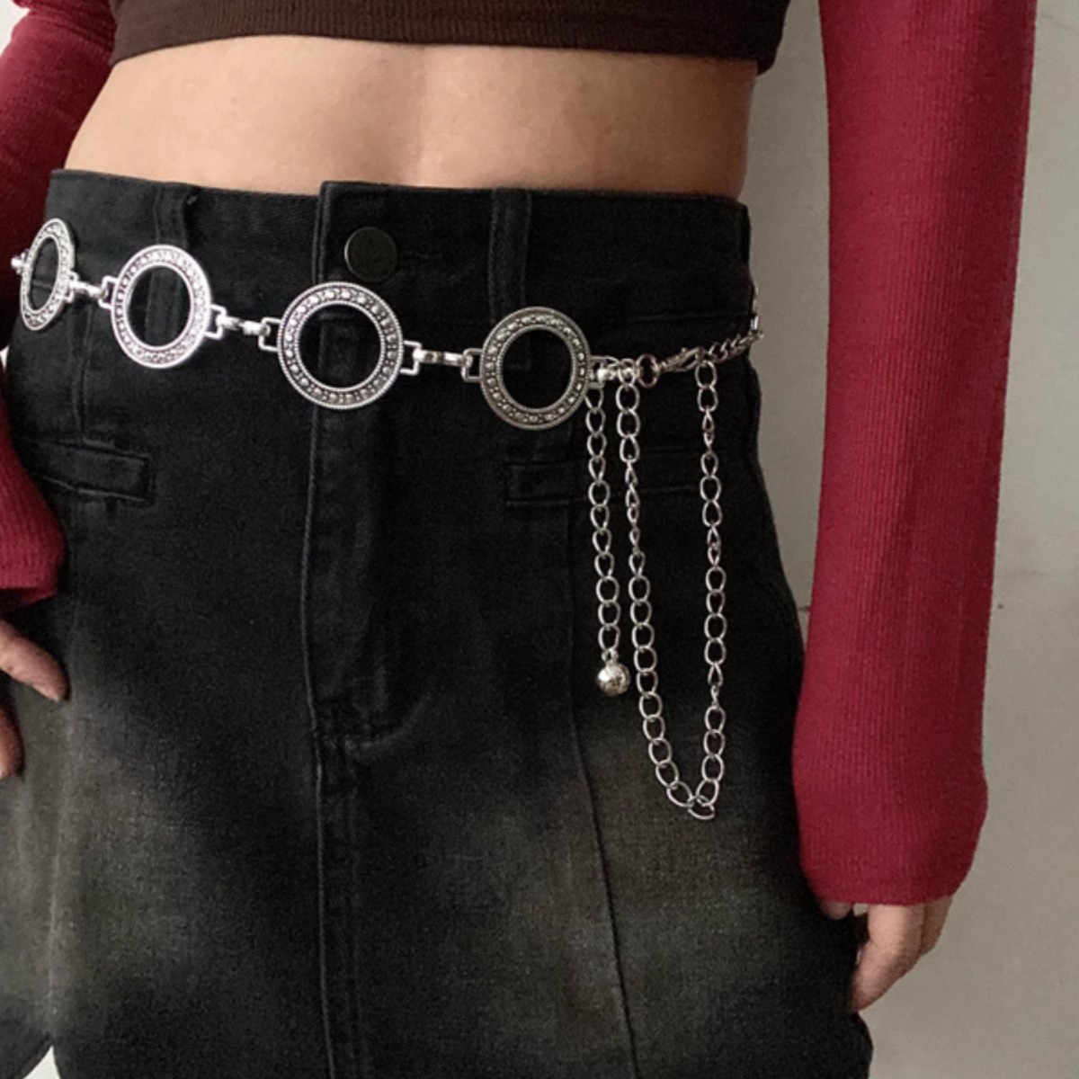 圆圈金属腰链银色配饰新款简约复古马面裙腰带配连衣裙高级感