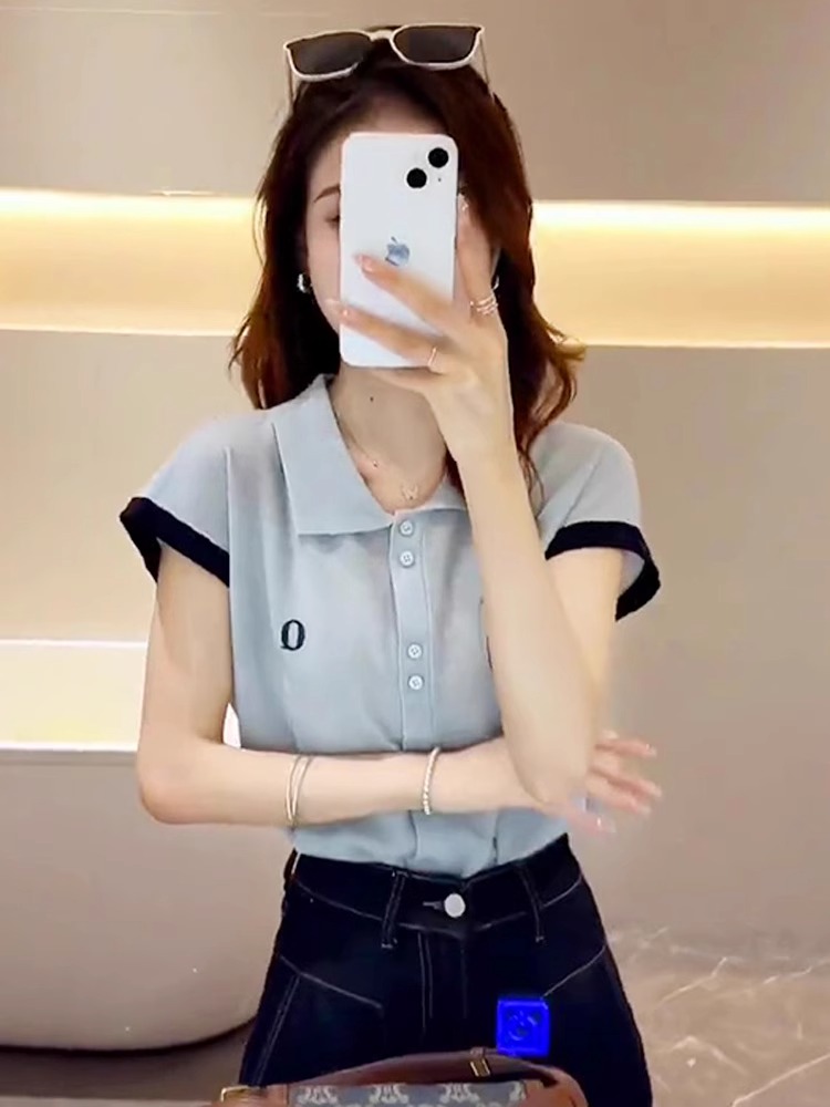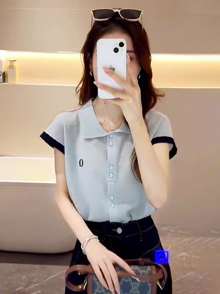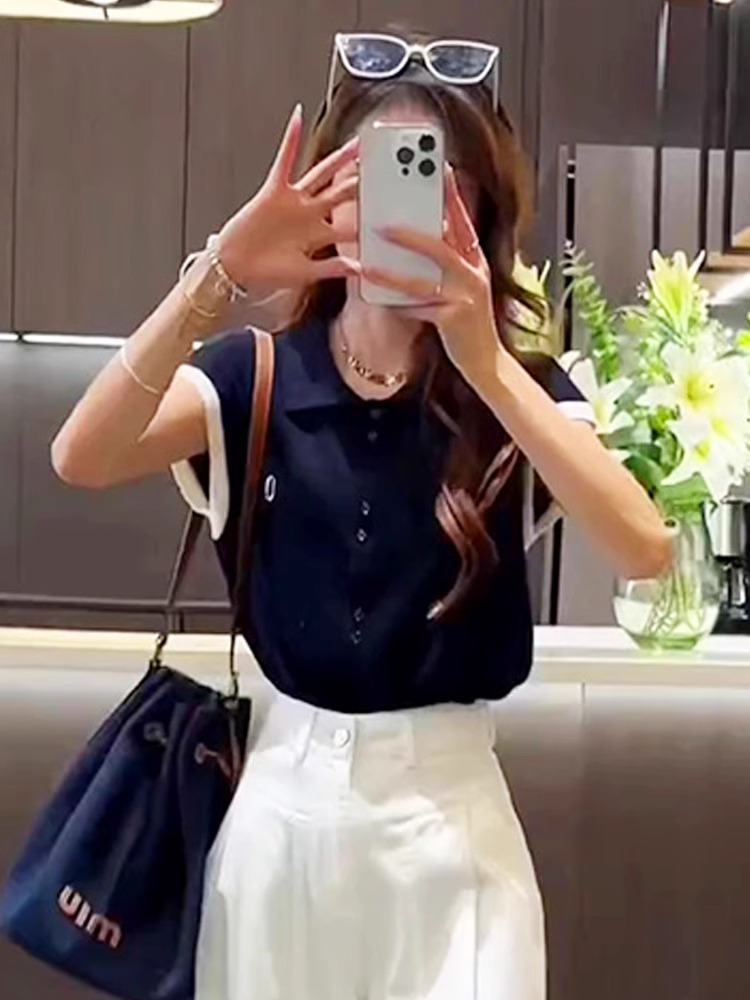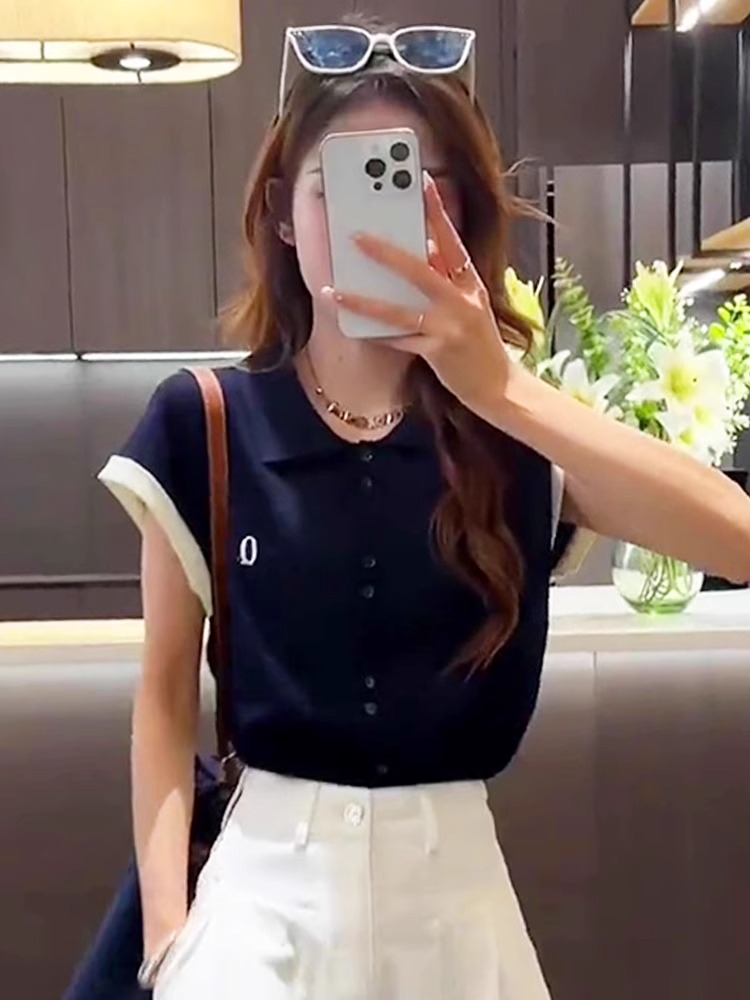 薄款冰丝针织衫针织短袖女2025新款爆款夏季坎肩POLO衫开衫上衣女