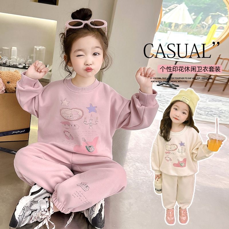 新款中小童套装韩版春秋女童新款宝宝洋气儿童卫衣休闲两件套童装